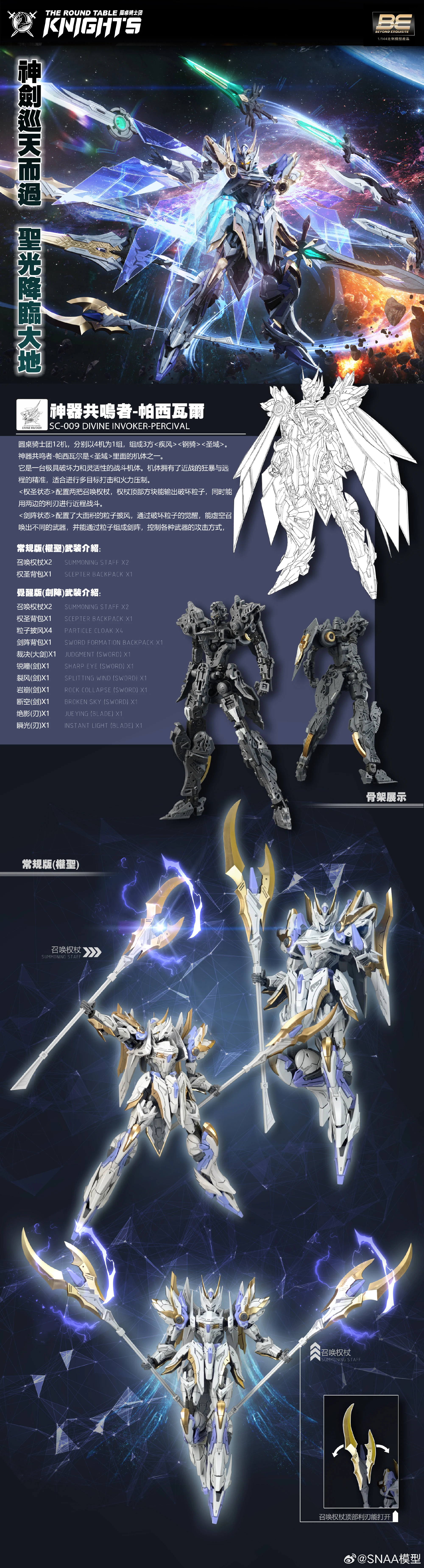 SNAA에서 지난주 퍼시벌 목업 사진 공개에 이어 이번에는 공식 사진을 공개했습니다. 기체의 실물 컬러와 노멀 버전/디럭스(각성) 버전의 구성품을 확인할 수 있네요. 그리고 원탁기사단 설정에 대한 이야기도 보이는데요. 원탁기사단 시리즈는 총 12개 기체로 구성되어 있고, 4개의 기체가 1개 조를 이뤄 각각 ‘질풍’, ‘강기’, ‘성역’ 기사로 불린다고 합니다. 이번에 공개된 퍼시벌은 ‘성역’에 속한다는군요 ㅎㅎ