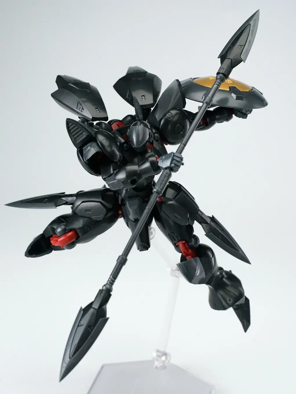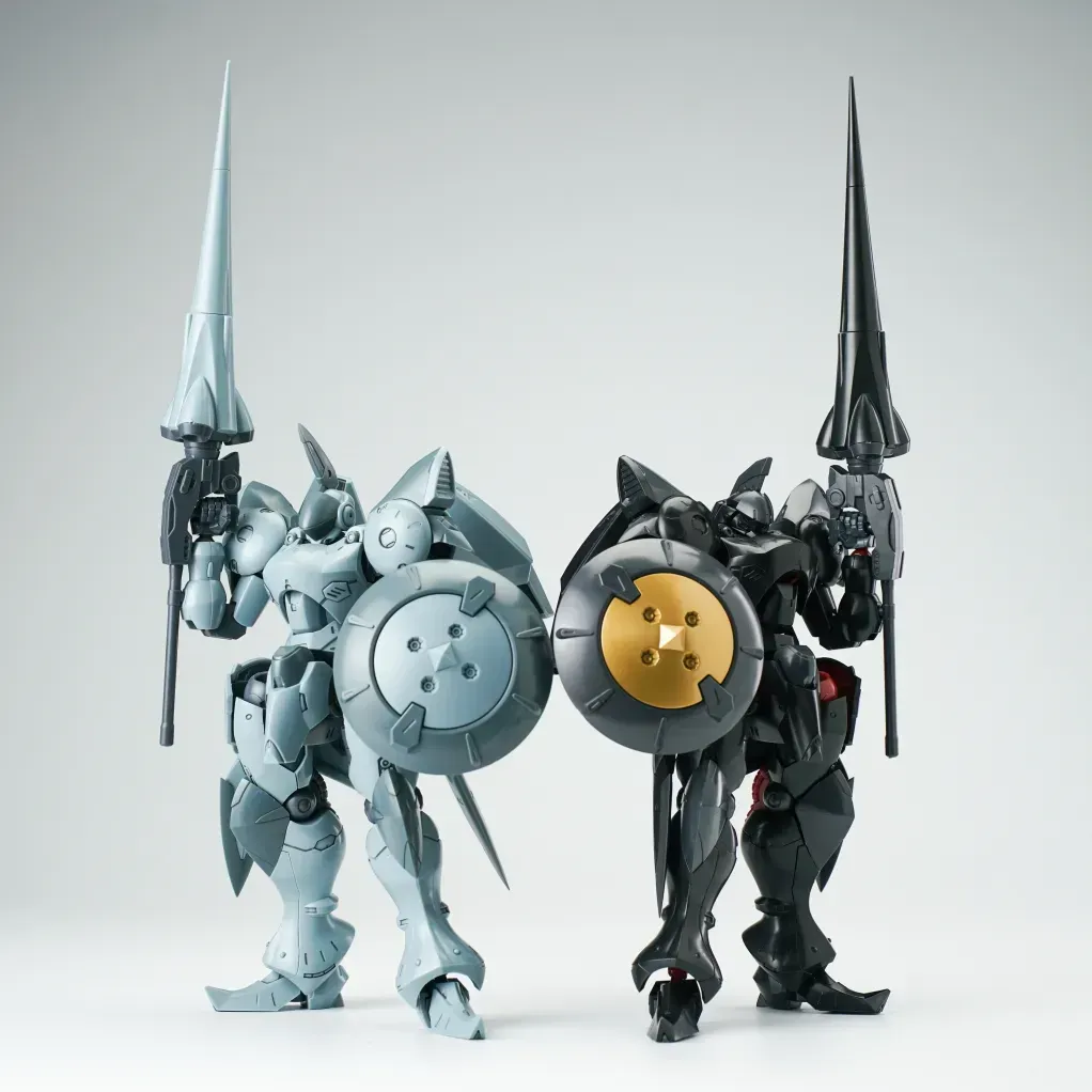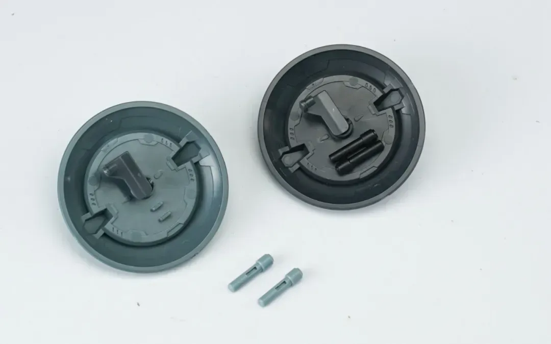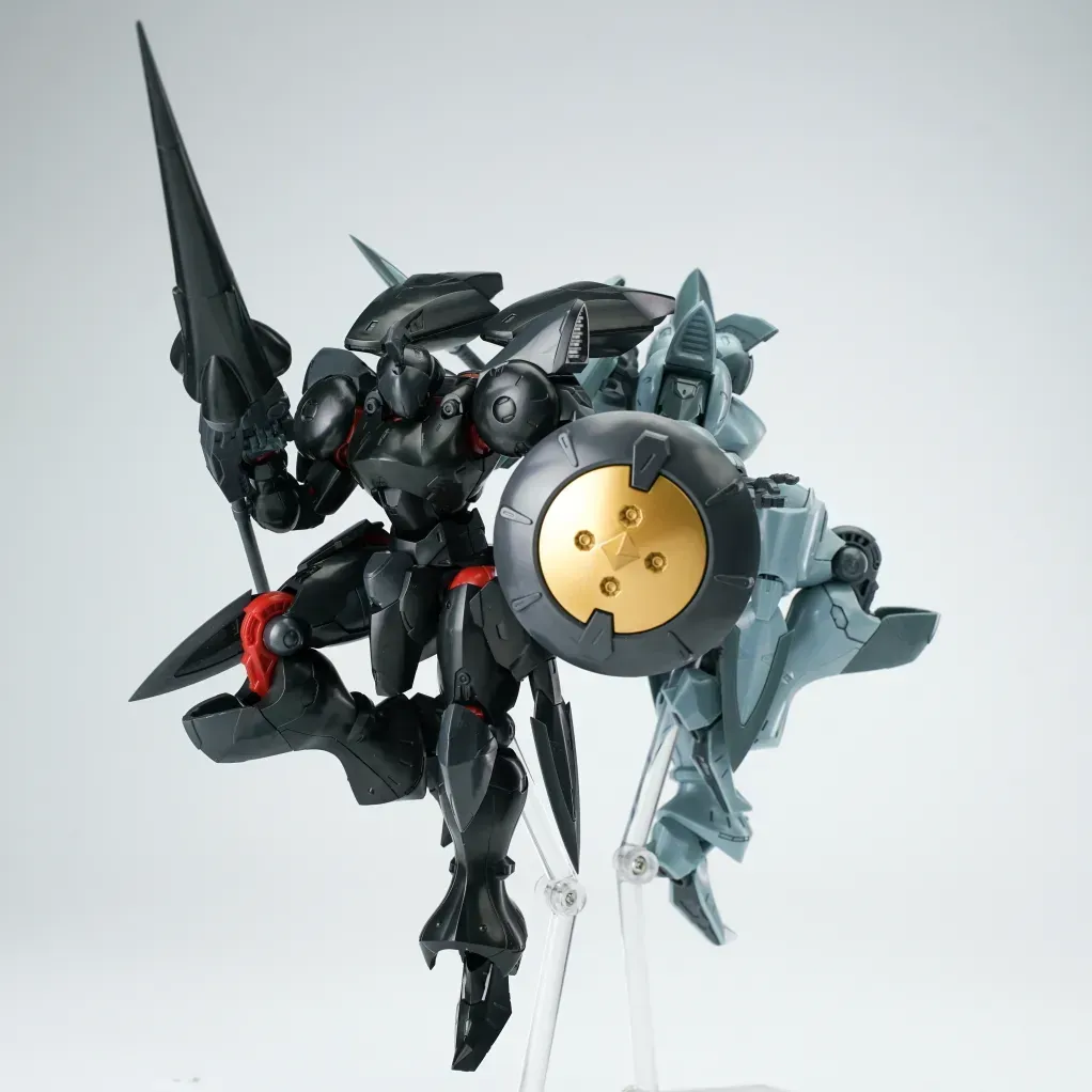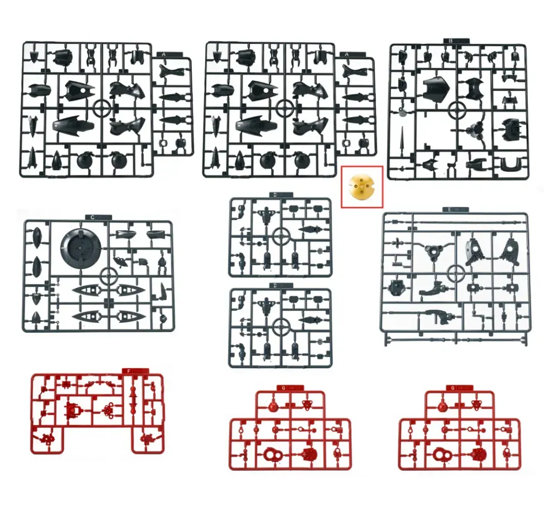 - 블랙 버전의 경우, 외장 파츠는 메탈릭 블랙 성형색이며, 라운드 실드 중앙의 동그란 파츠는 골드로 사전 도색 처리됐습니다. 일부 관절은 다크 레드 컬러가 적용됐구요.