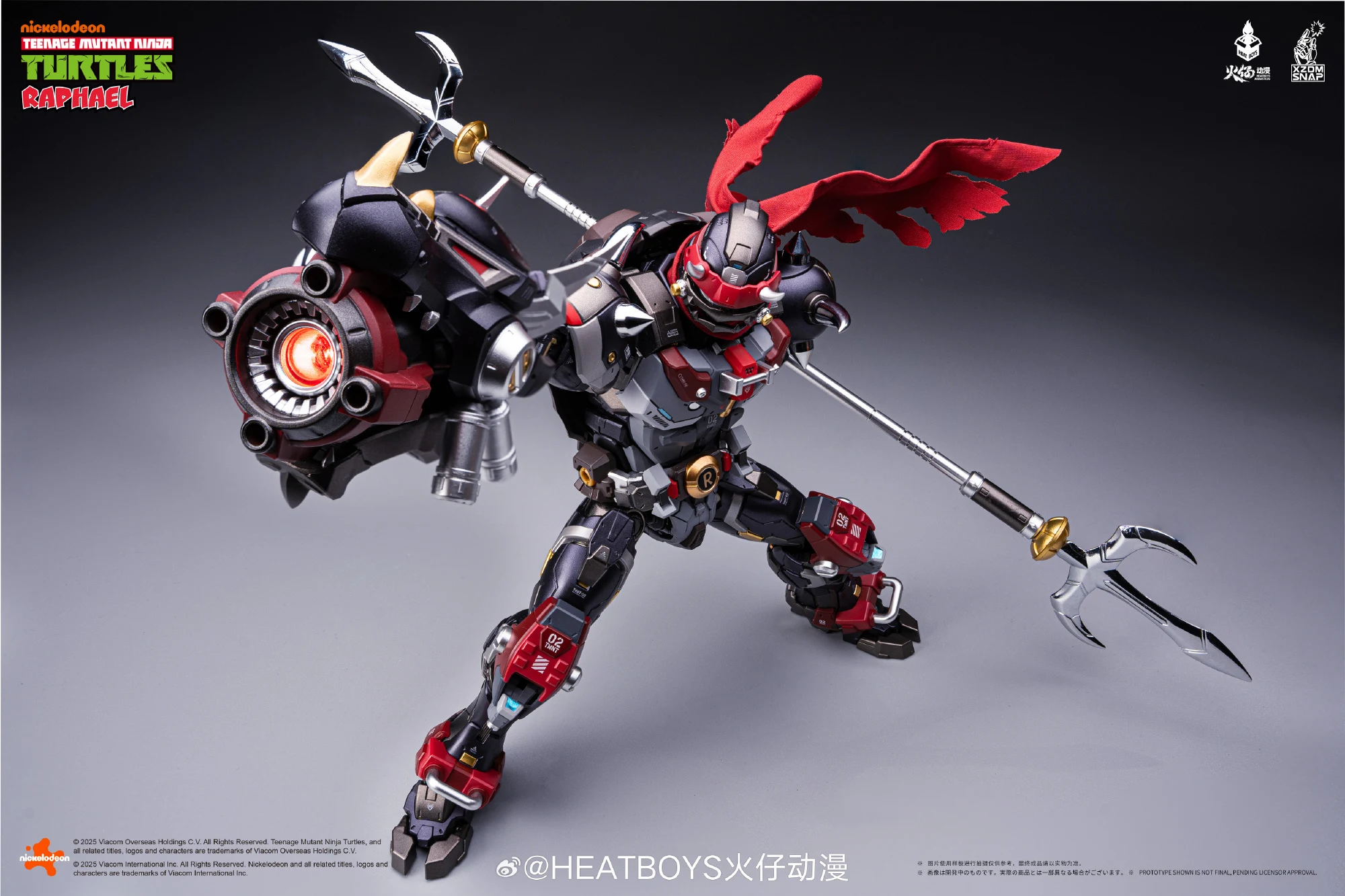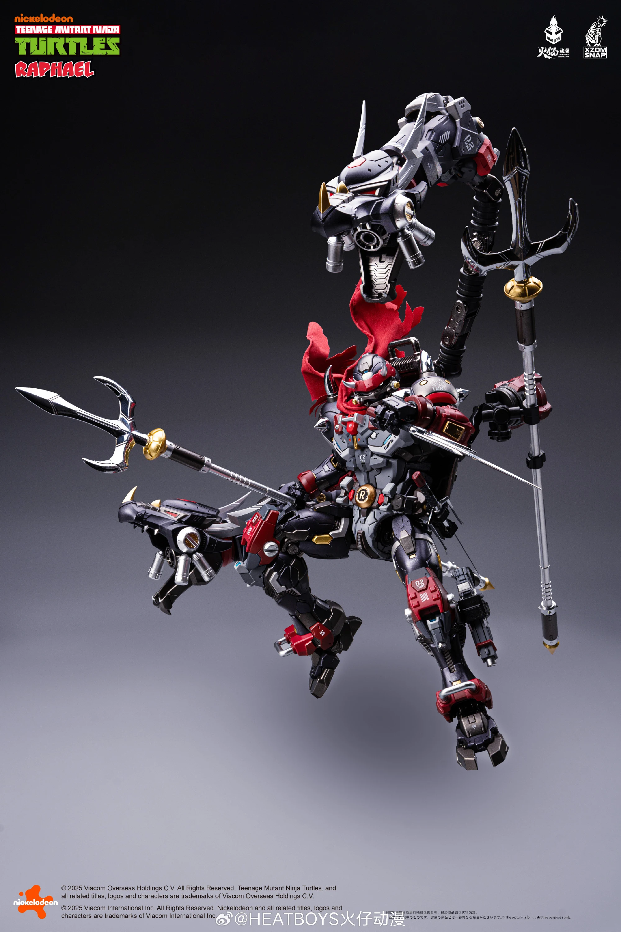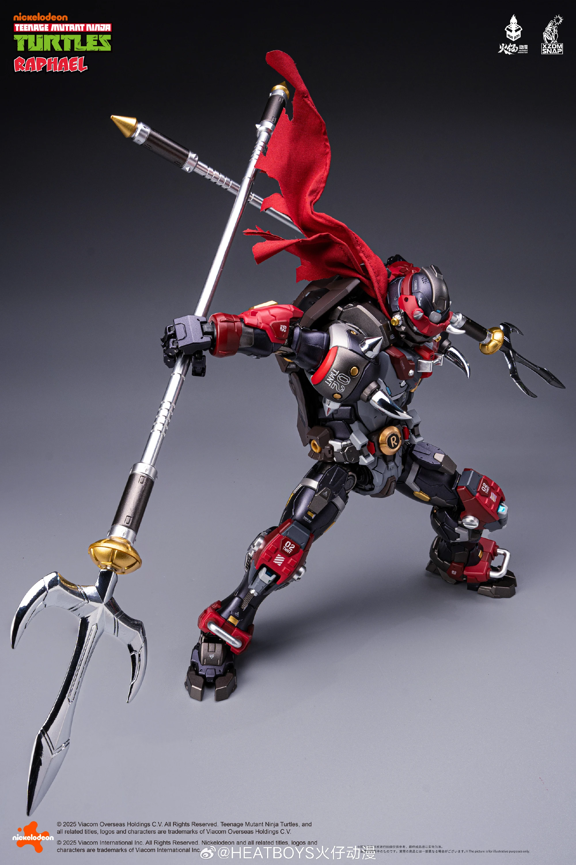 히트보이즈에서 메카히트 시리즈(합금완성품)로 제작해온 닌자거북이 라파엘의 40주년 기념 버전 ‘적살’을 공개했습니다. 기존 라파엘과 비교해 컬러도 조형도, 무장도 꽤 리파인된 모습이네요. 붉을 적, 죽일 살의 ‘적살’이라는 이름처럼 닌자거북이의 그린 컬러가 완전히 빠지면서 블랙-레드 컬러 조합으로 탈바꿈했으며 목의 레드 스카프, 백팩과 연결된 용 머리 캐논 무장, 은빛의 삼지창이 멋집니다.