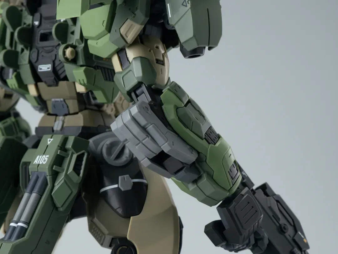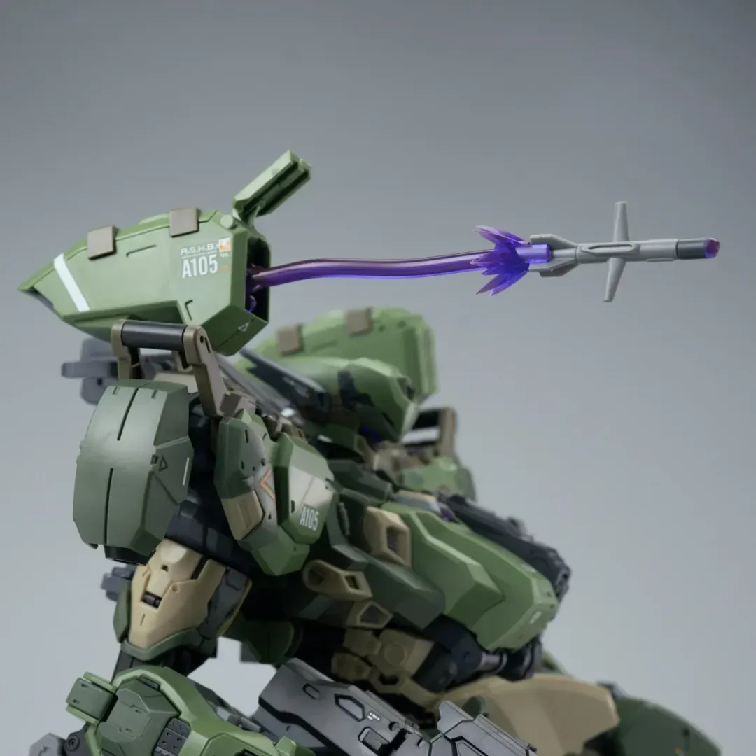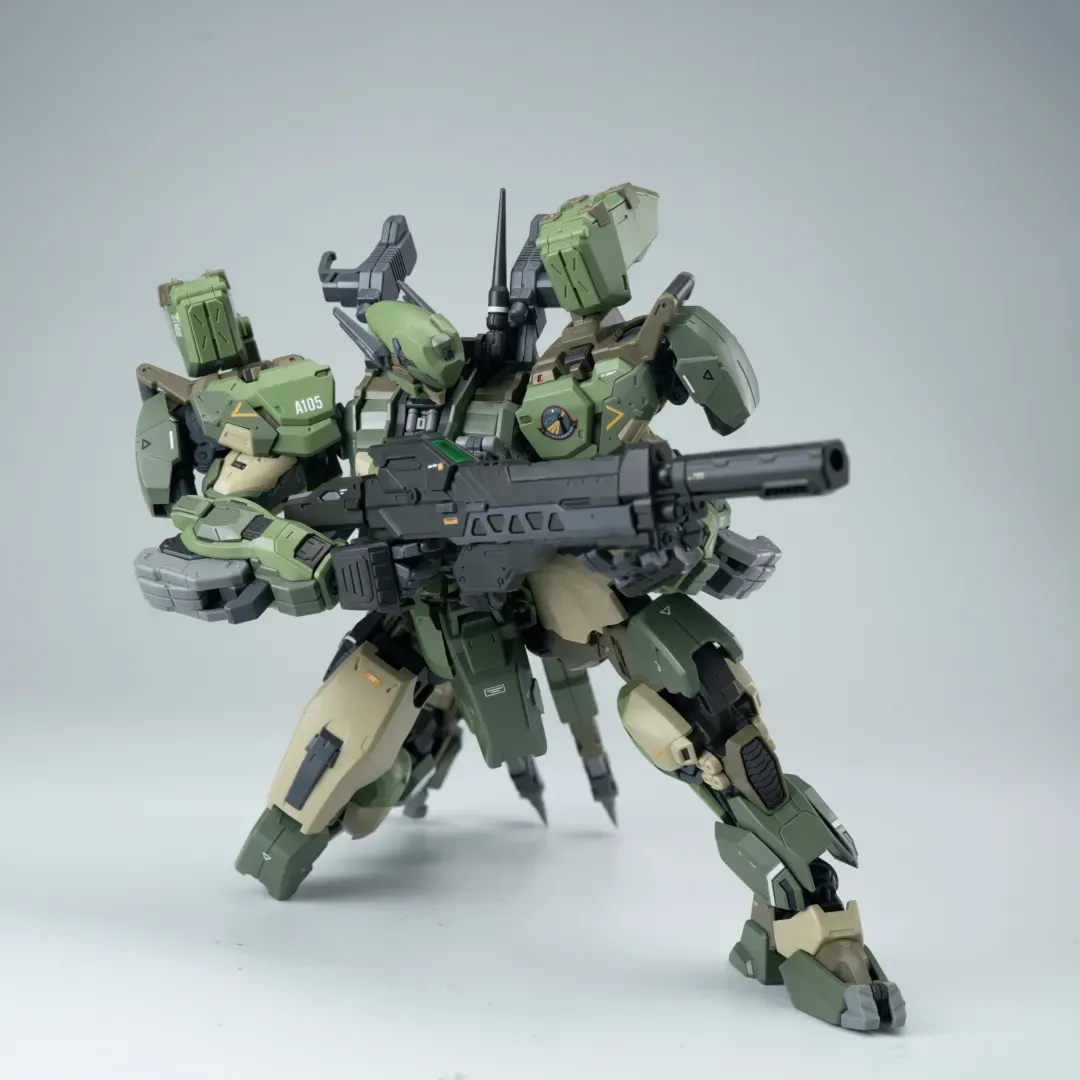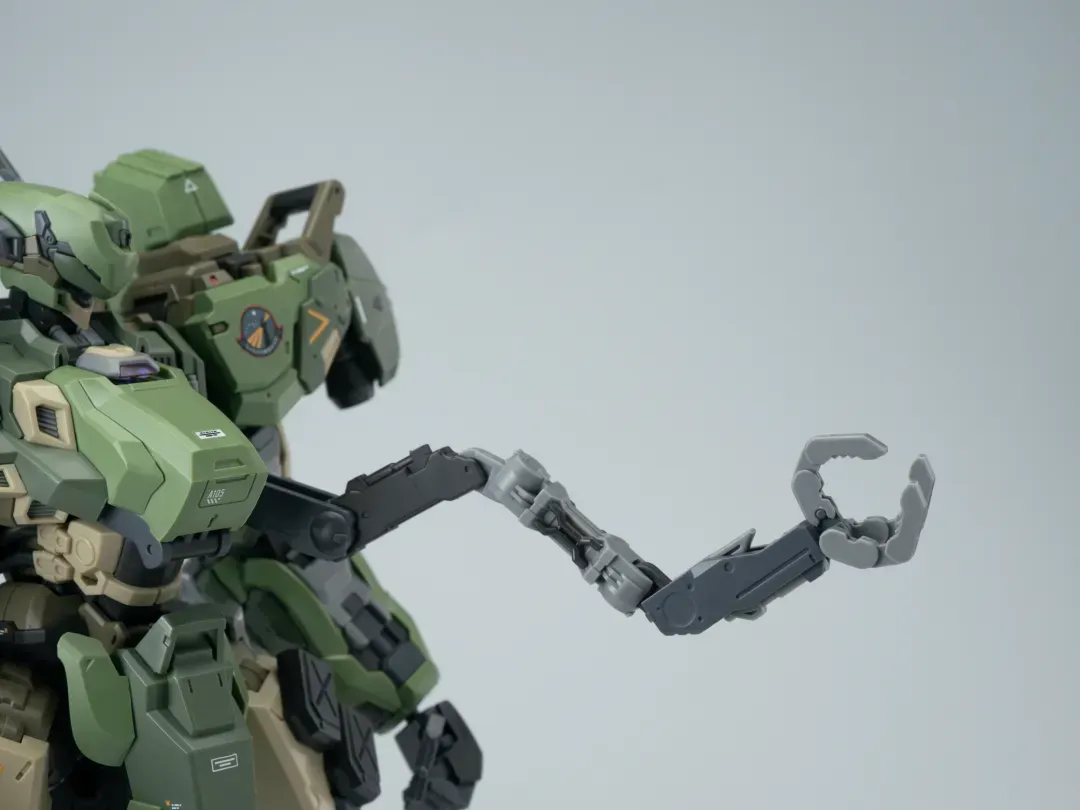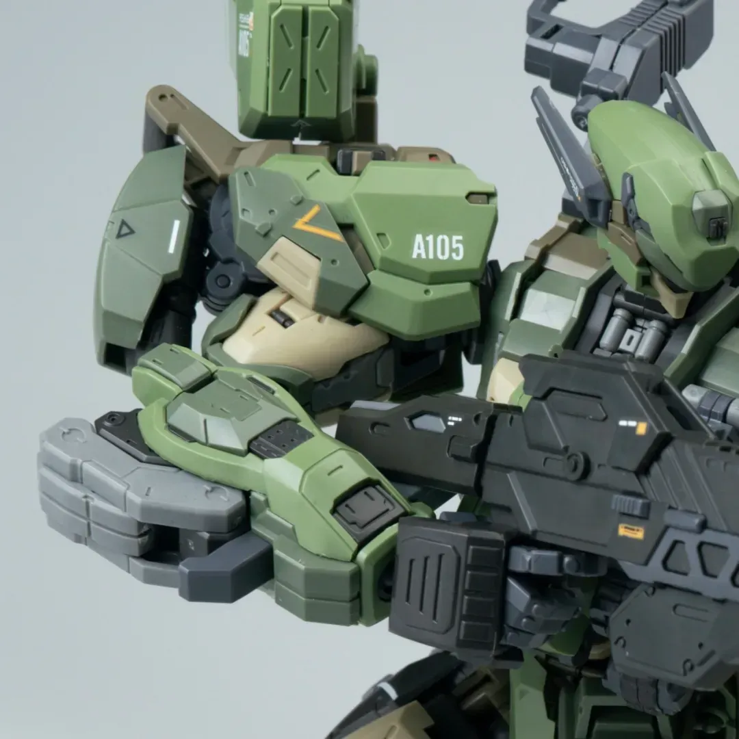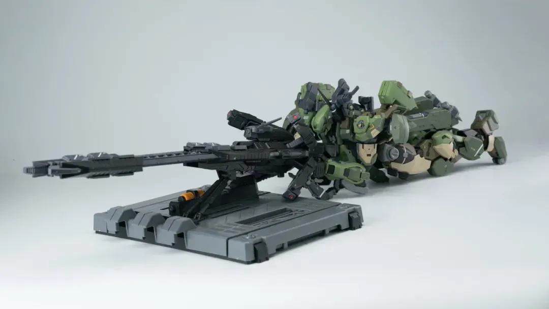 - 팔의 후면에도 메카닉 암이 삽입되어 있으며, 가슴-어깨 관절은 바깥으로 슬라이드되는 구조를 갖추고 있어 자연스러운 라이플 포징이 가능합니다.