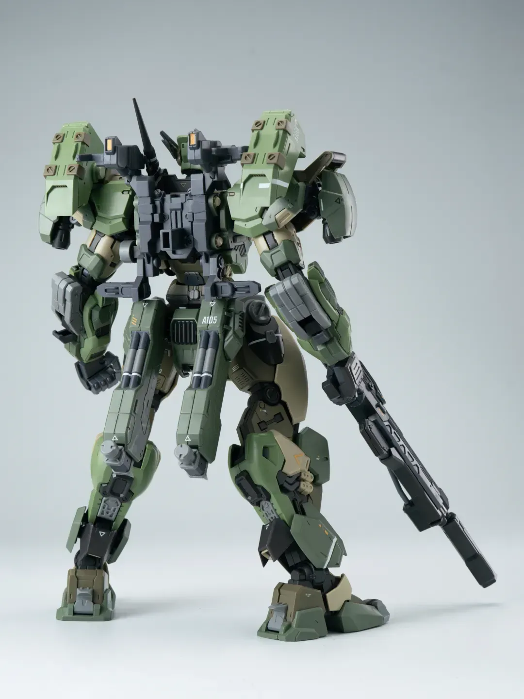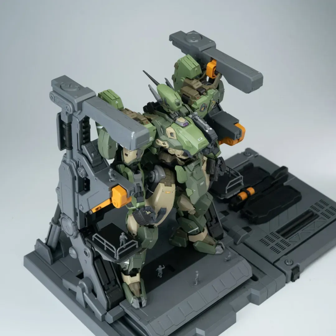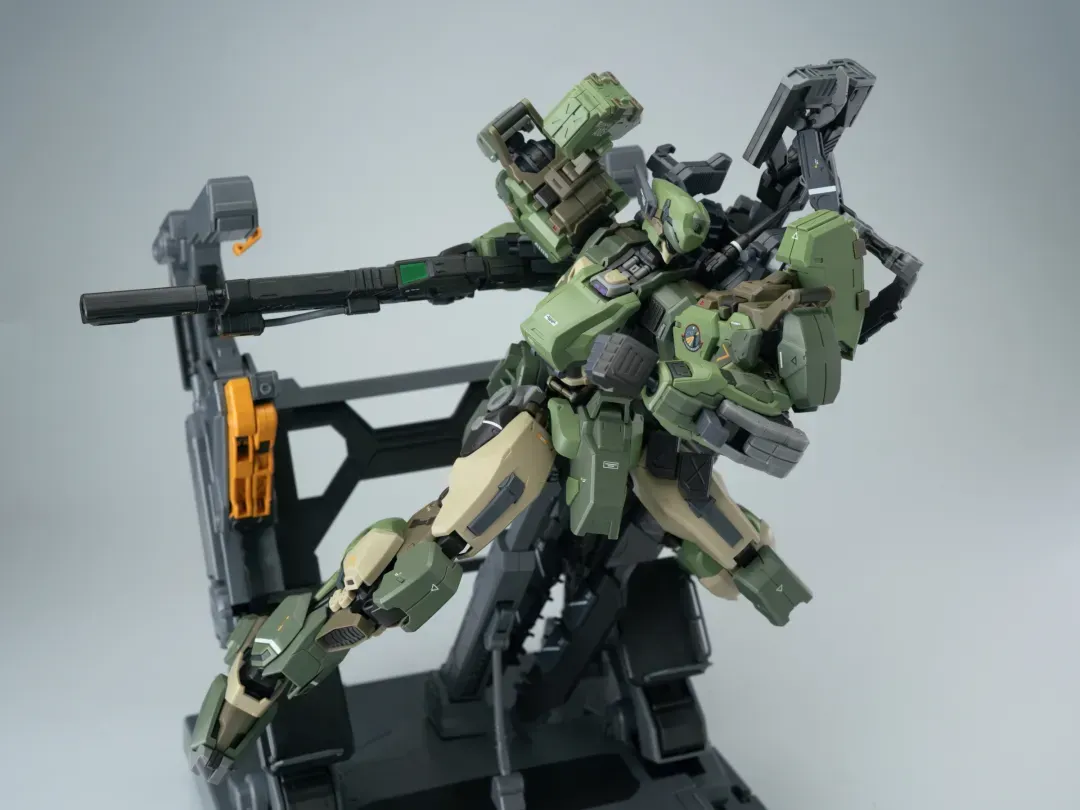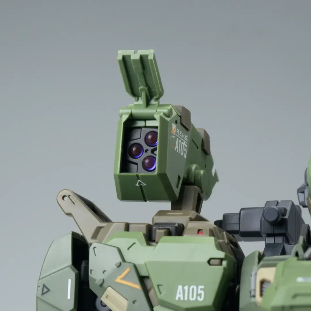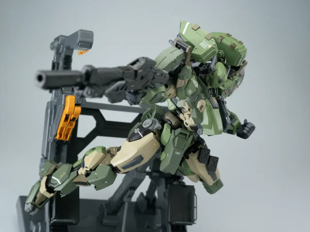 - 팔의 후면에도 메카닉 암이 삽입되어 있으며, 가슴-어깨 관절은 바깥으로 슬라이드되는 구조를 갖추고 있어 자연스러운 라이플 포징이 가능합니다.