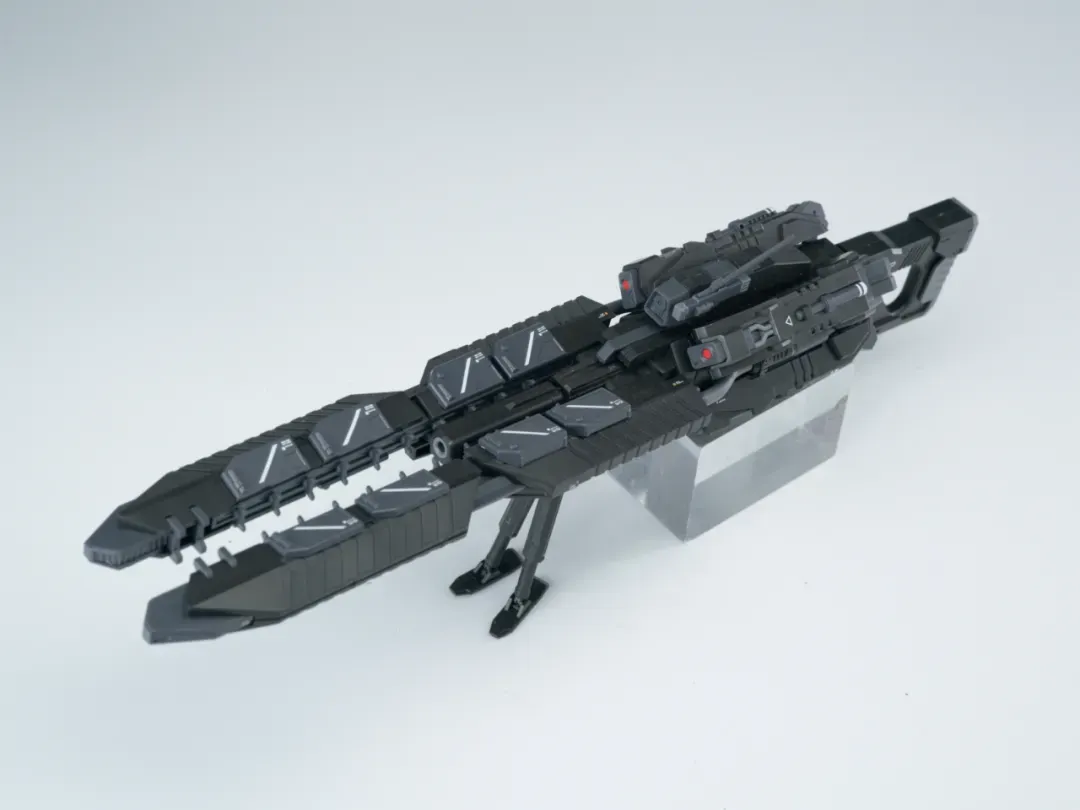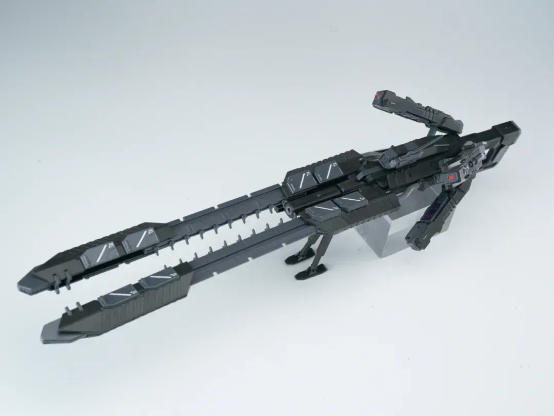 - 초장거리 스나이퍼 레일건은 여러가지 모드로 변형 가능하며 포신 부분의 문양과 에너지 전송 디테일 적용(길이: 28cm, 포신 전개시 최대 37cm)