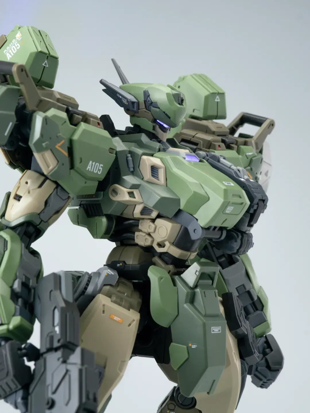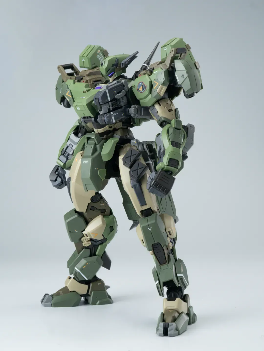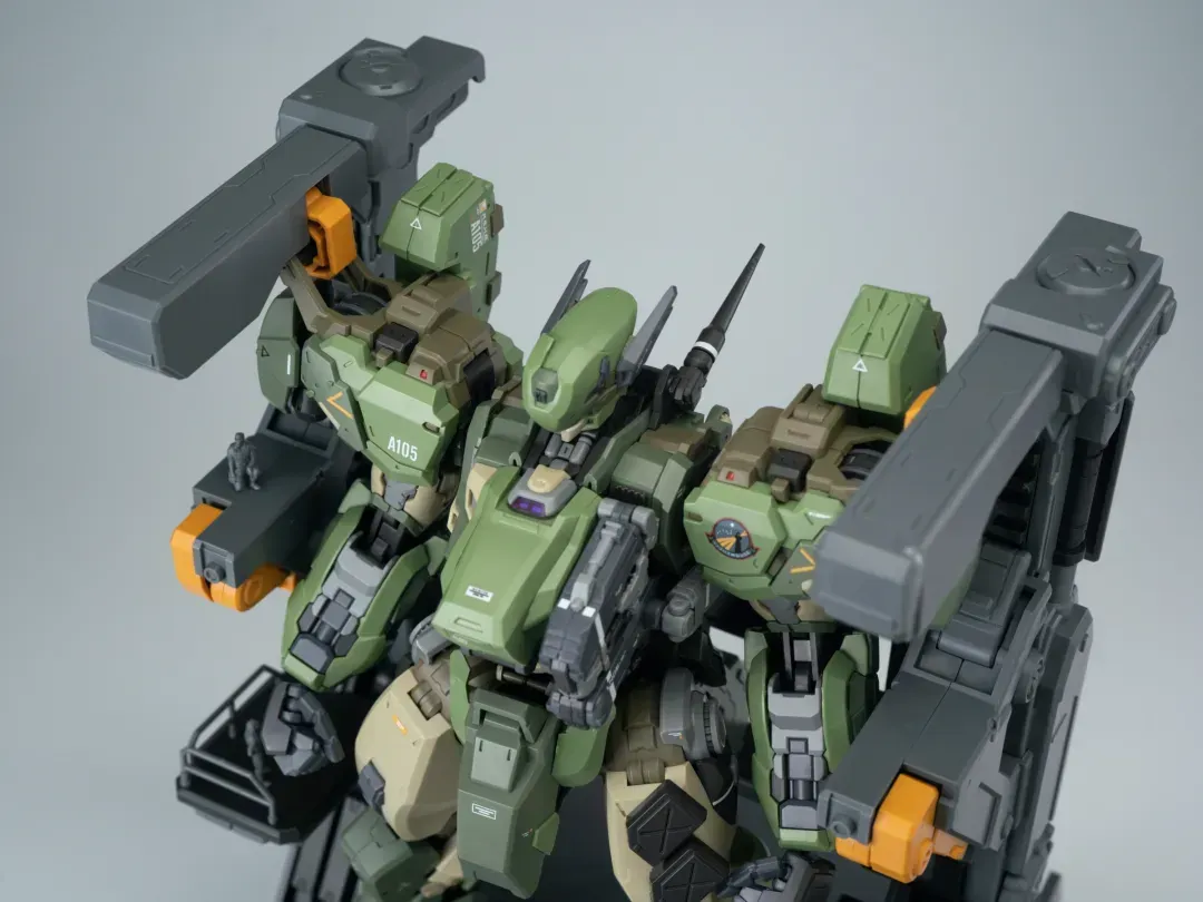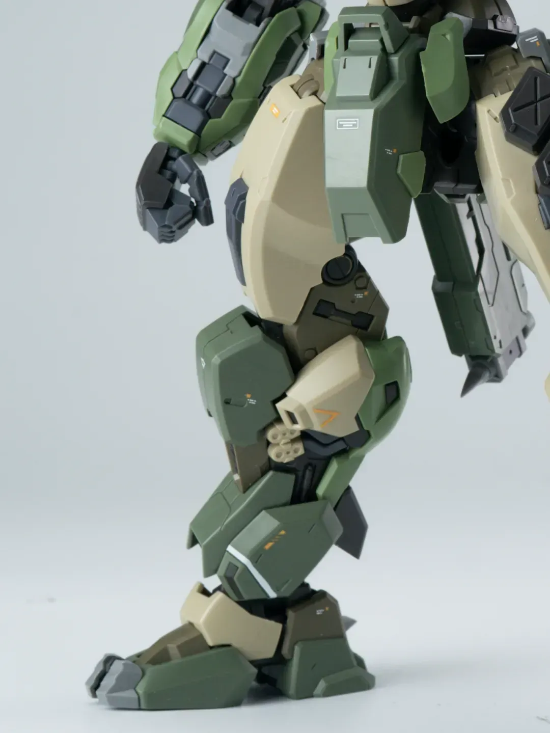 - 제품 컬러는 옅은 그린과 짙은 그린으로 투톤 분할했고 그레이와 채도가 낮은 베이지 컬러로 구성됐습니다. 카모폴라쥬 느낌의 색 구성인지라 육전형 기체라고 할 수 있겠군요.
