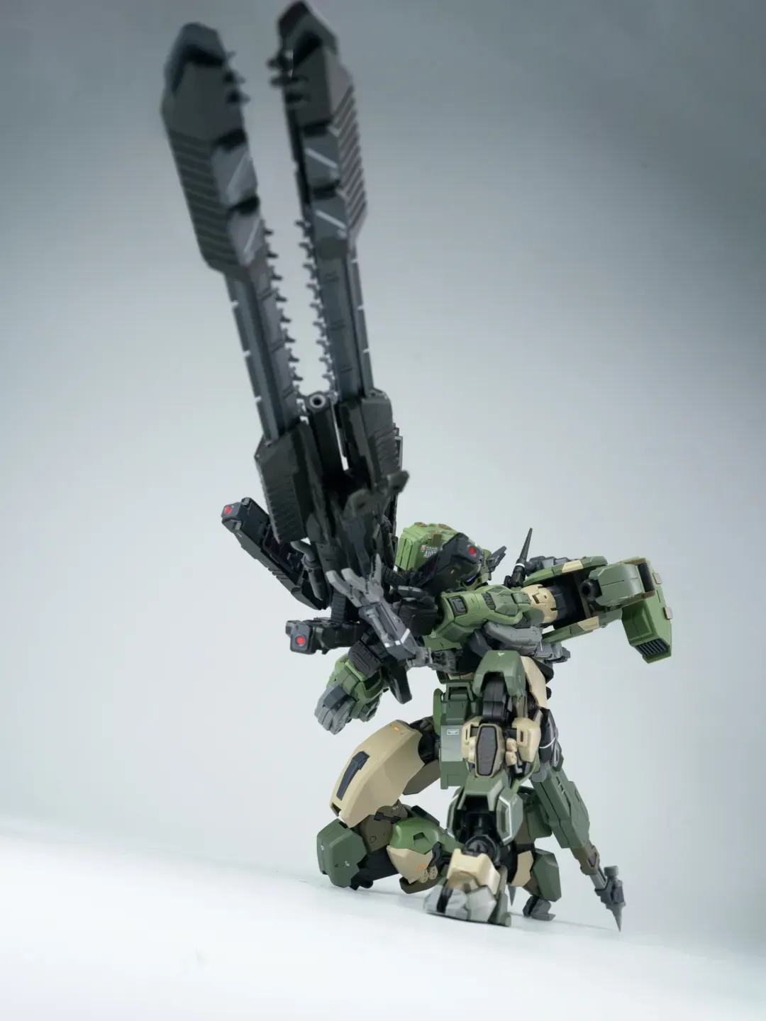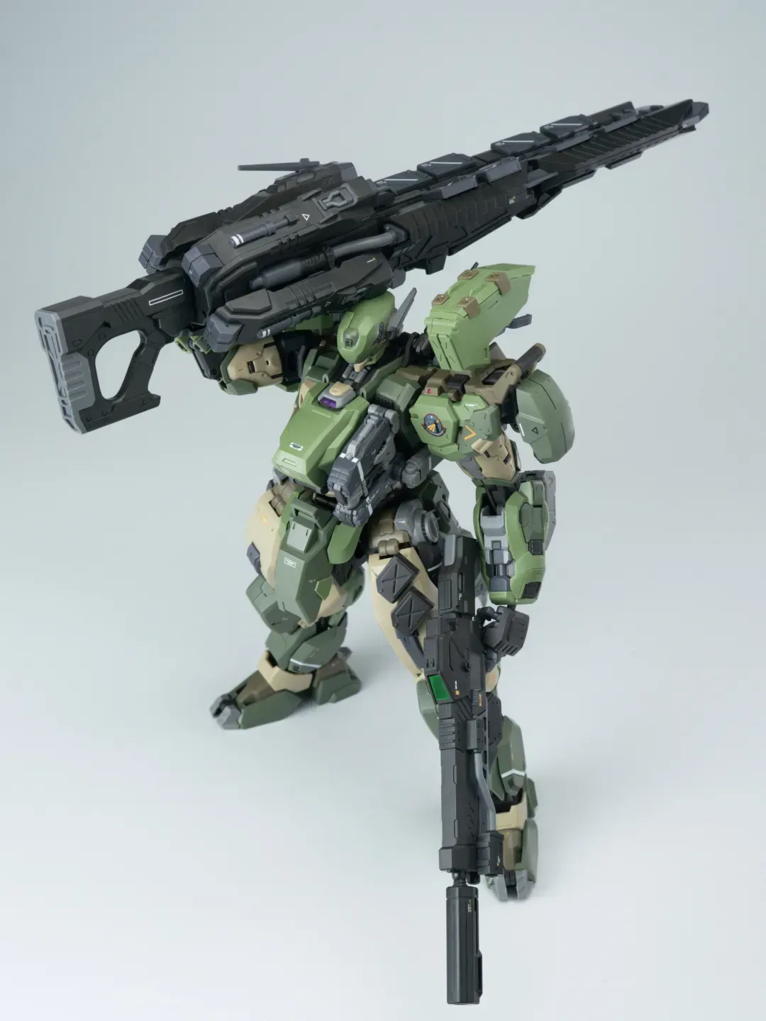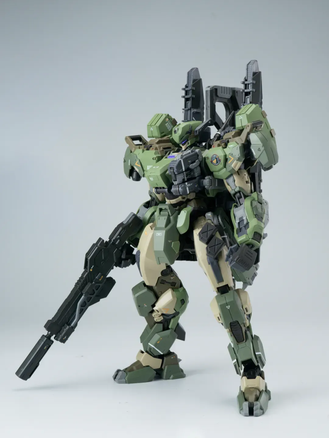 - 제품 컬러는 옅은 그린과 짙은 그린으로 투톤 분할했고 그레이와 채도가 낮은 베이지 컬러로 구성됐습니다. 카모폴라쥬 느낌의 색 구성인지라 육전형 기체라고 할 수 있겠군요.