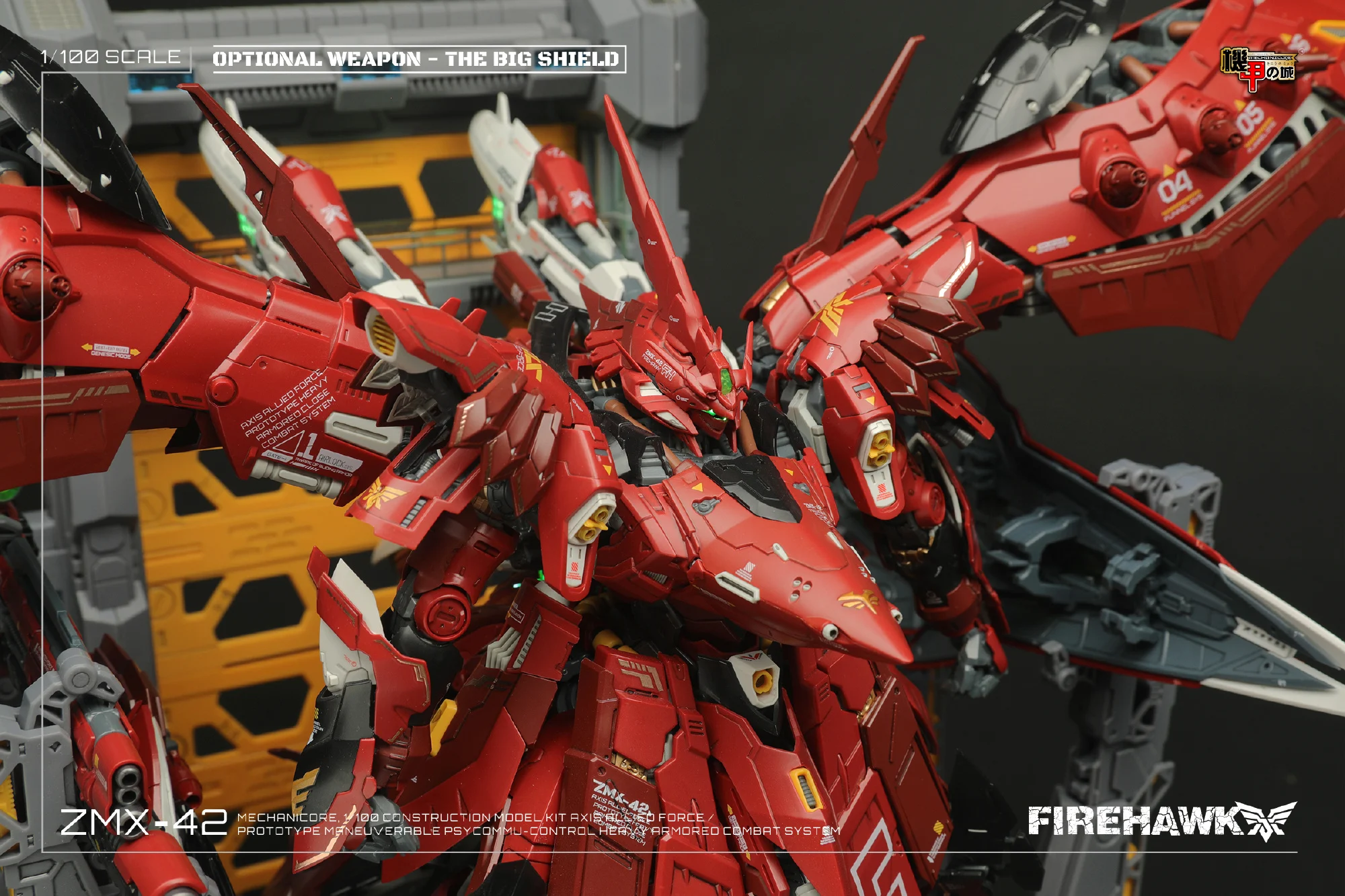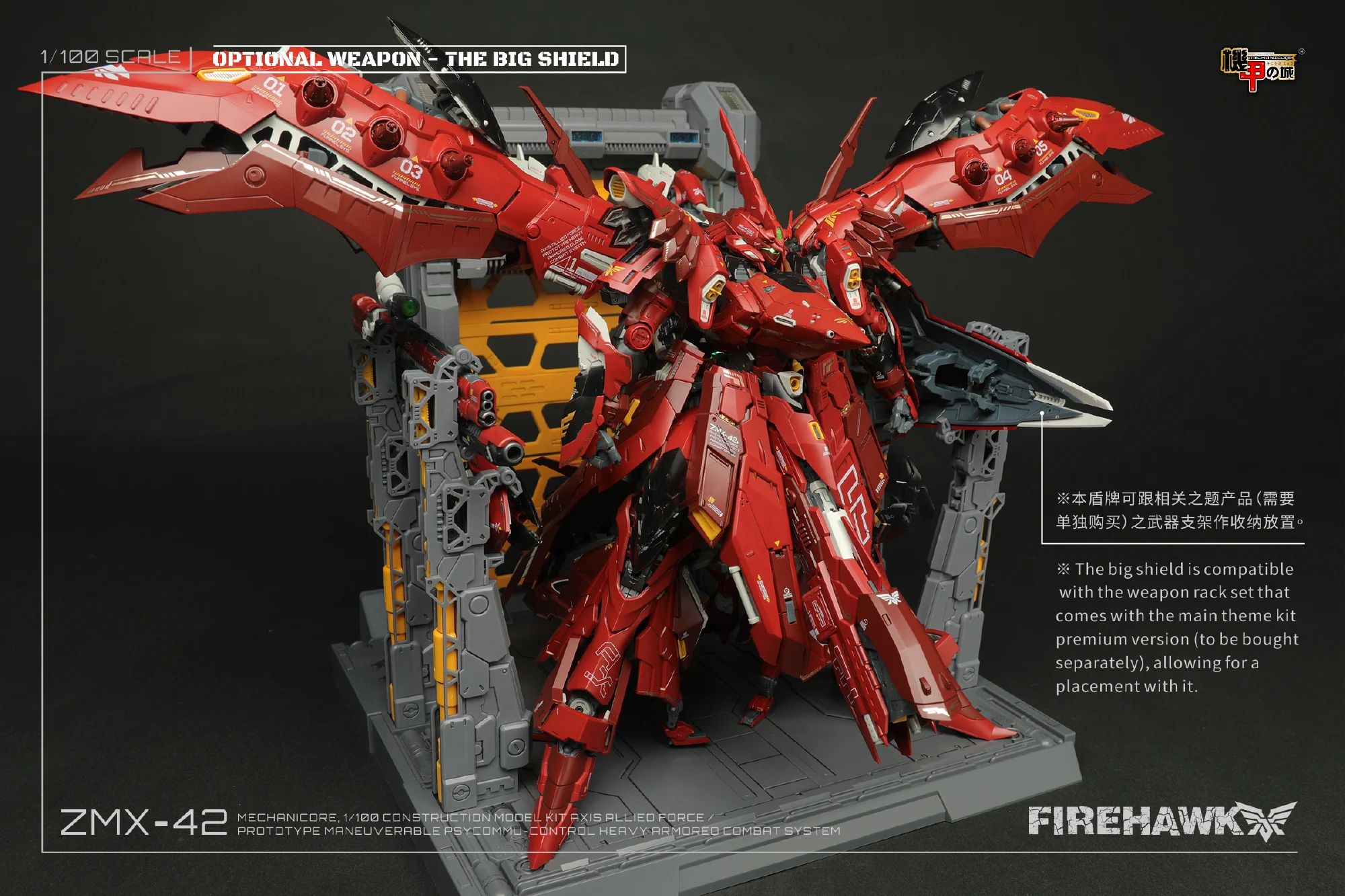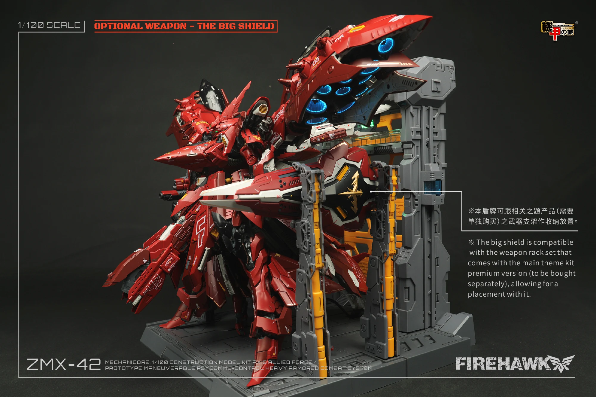 메카니코어는 2023년 12월, 10주년 기념으로 1/100 파이어 호크(마개조 나이팅 게일/모터헤드) 예약 판매를 진행했었죠. 이후 2024년 9월에 갑자기 파이어 호크 극지 작전 버전(화이트 컬러)을 공개하며 예약 판매하더니…전용 대형 쉴드 파츠를 예약가 88위안(108위안) 개별 판매했던 기억이 나는데요. 최근 이 대형 쉴드 파츠의 작례 사진과 출하 관련 공지가 올라왔군요 ^^;;