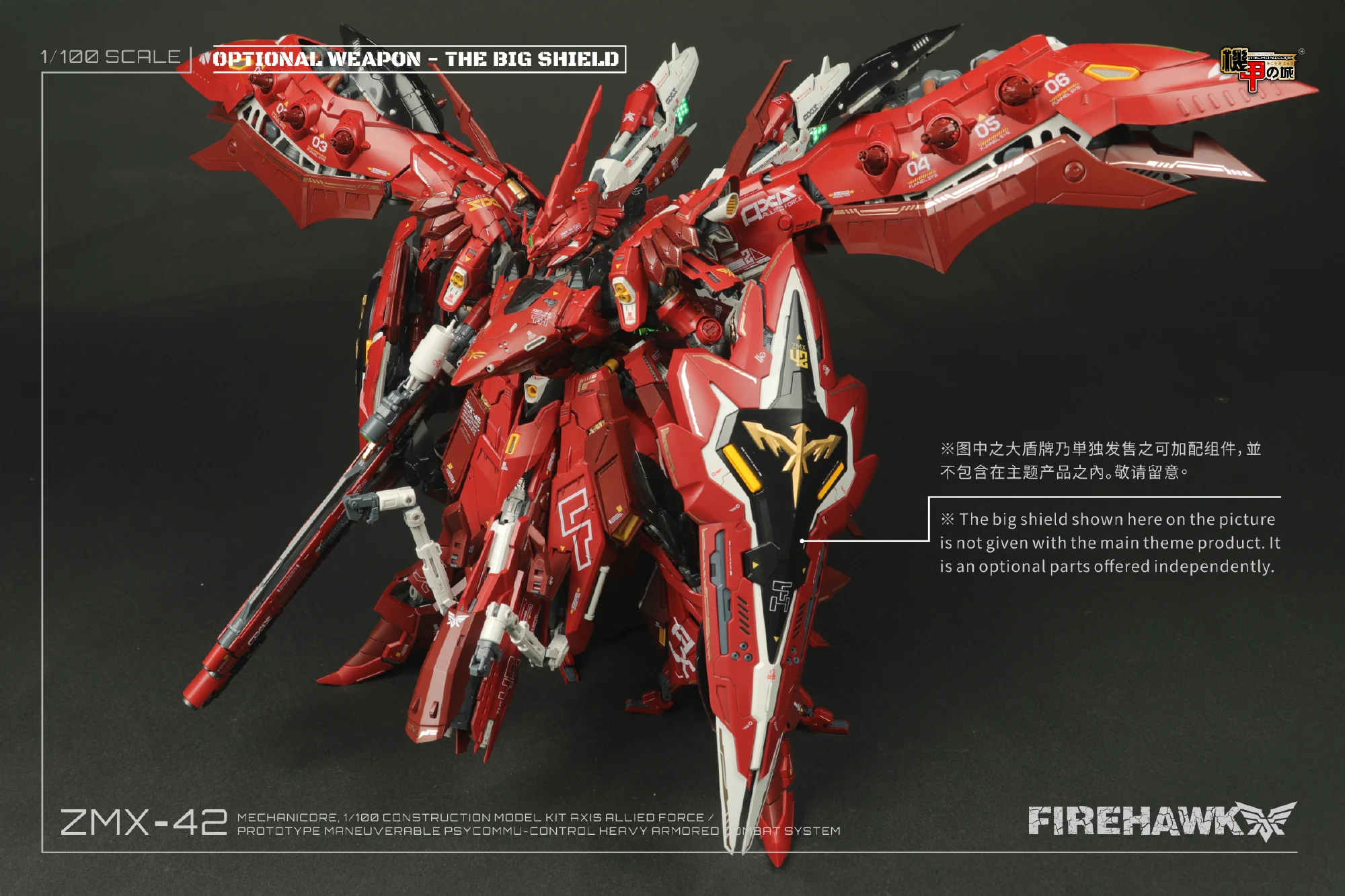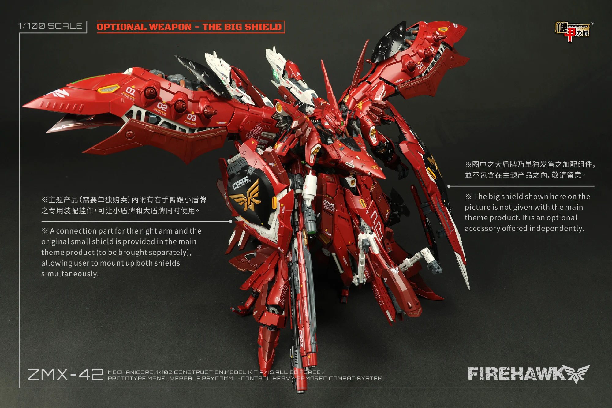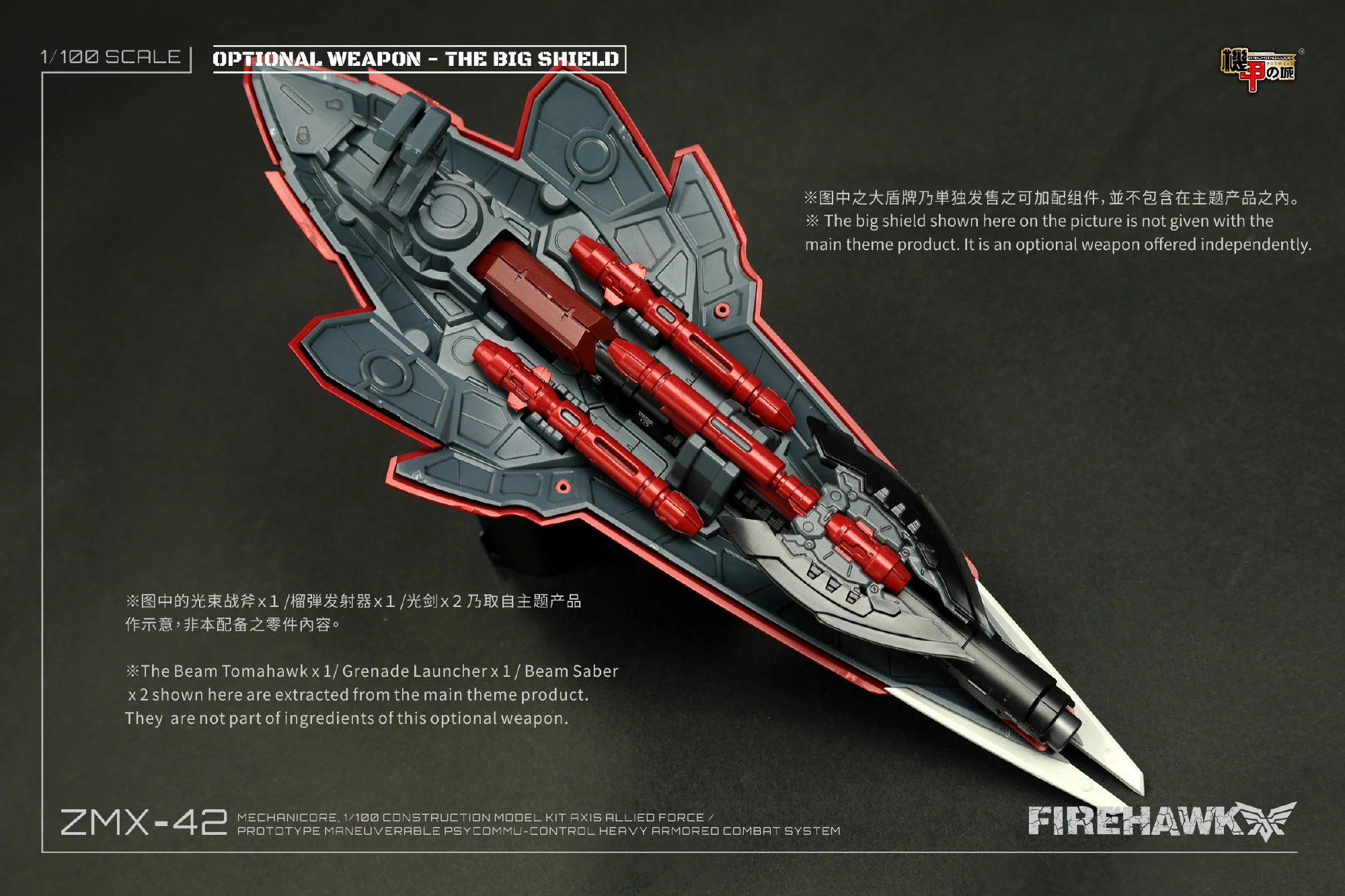 (* 전용 대형 쉴드는 원래 파이어 호크에는 미포함이며, 개별 판매되는 제품입니다)