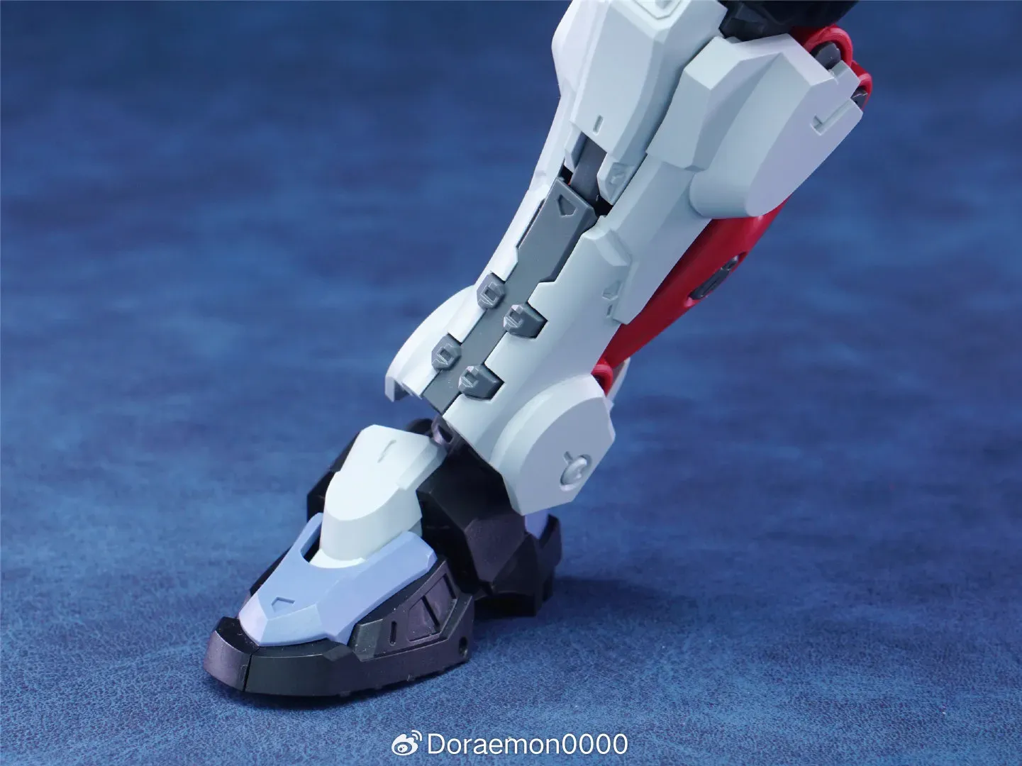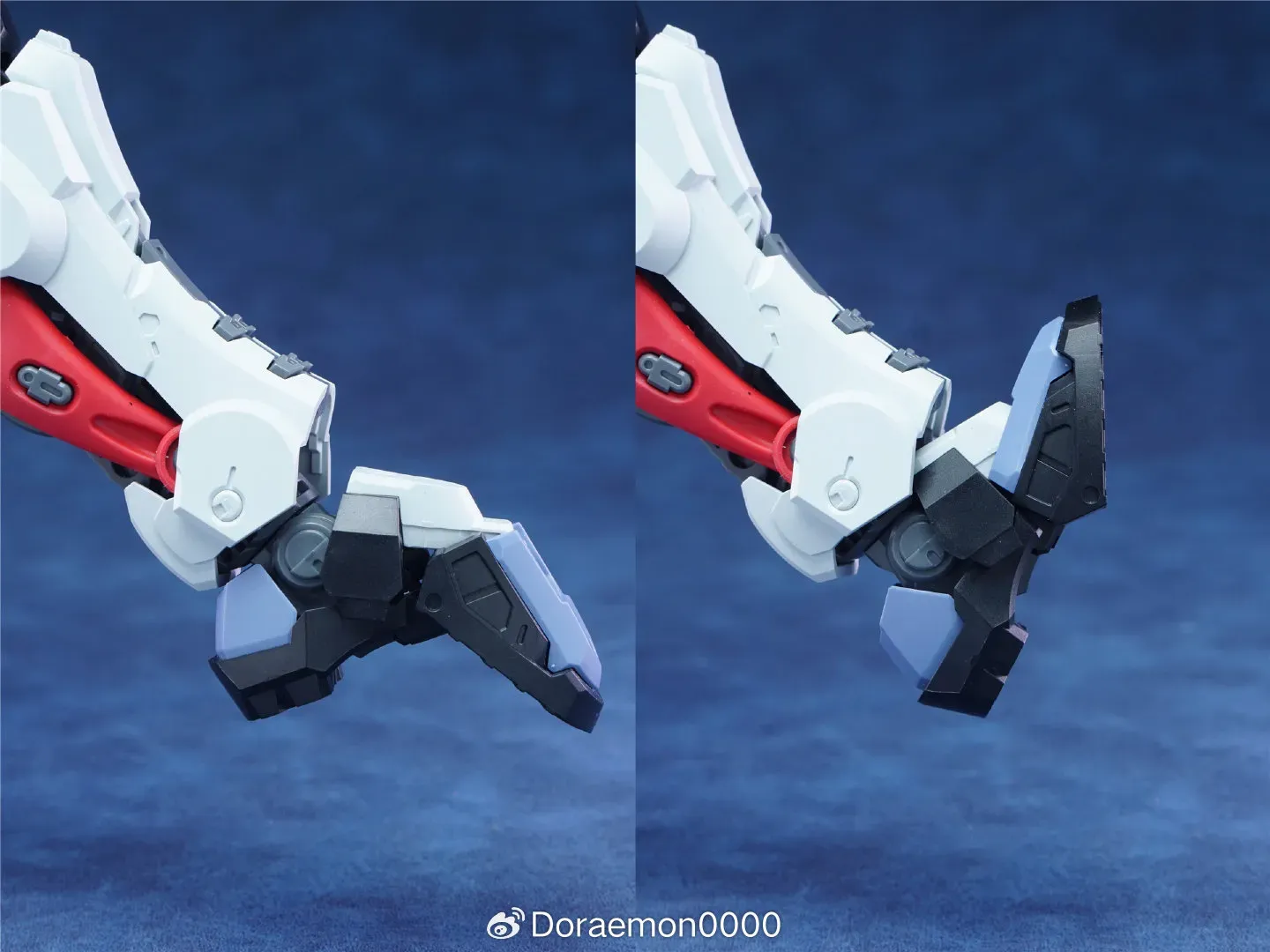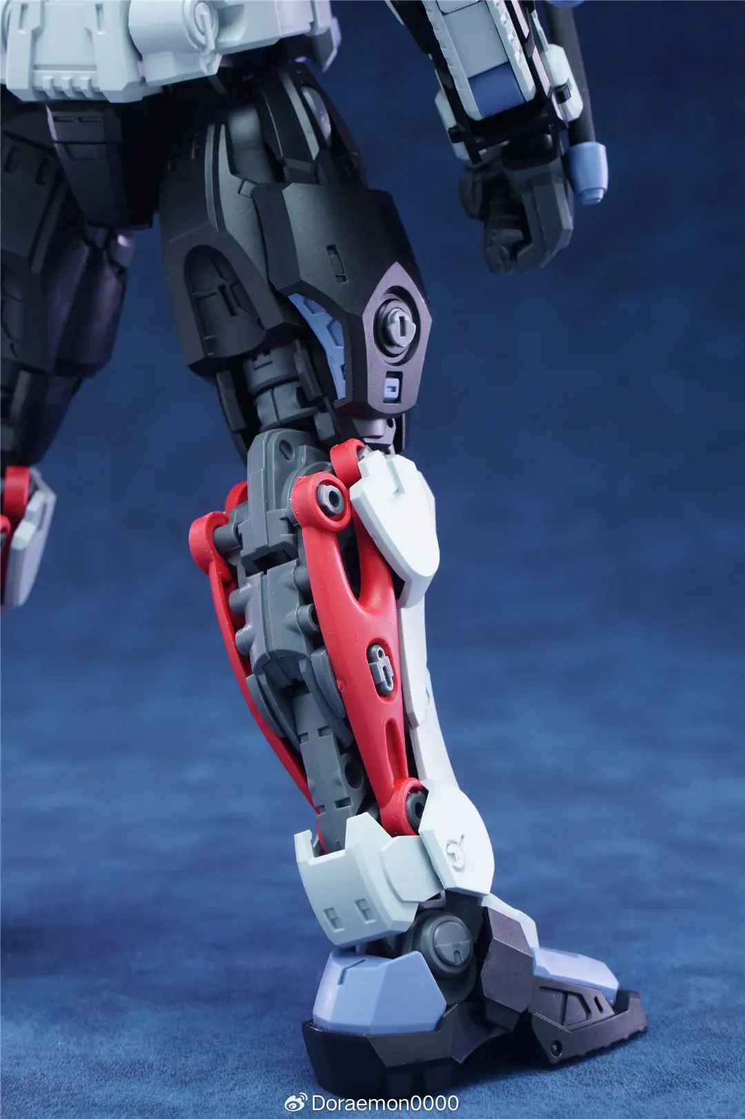 | 자연스러운 무릎 접힘 여기도 빨간색 연질 파츠가 휘어지게 되어 있어 실제 근육 느낌을 줍니다 |