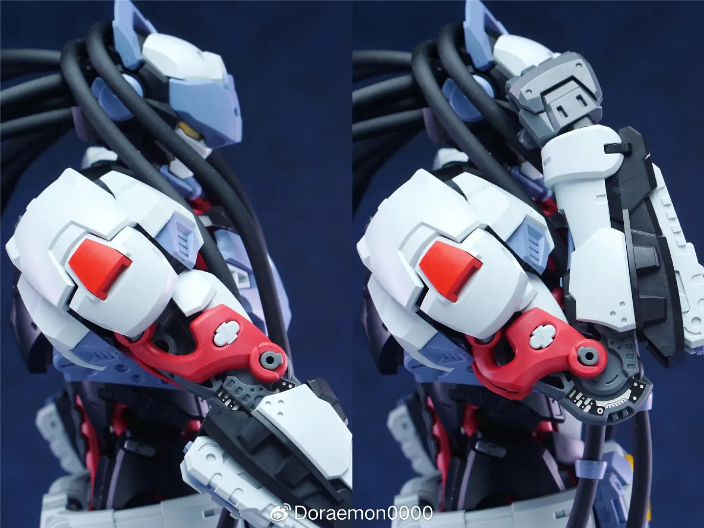 | 팔꿈치를 접을 때는 이두와 삼두 쪽 연질 파츠가 위 사진처럼 접히는 모습이네요 |