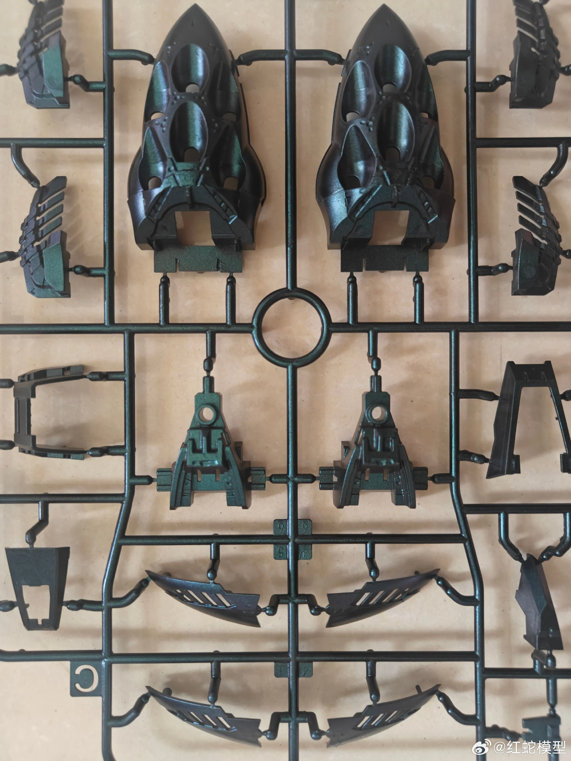 이어서 아래는 업체에서 공개한 세부 런너 사진입니다. 아무래도 런너를 가져다 그대로 카피한 제품이다보니...사출 품질이나 사전 도색 품질이 좋다고는 볼 수 없습니다. 사진의 몰드나 디테일, 표면이 깔끔하지 않아서 조립감에도 영향을 줄 것 같은데요. 카피 제품들이 대개 그렇듯 저렴한 가격에 감내할 수 있는 품질과 조립성을 갖췄느냐가 핵심이 될 듯 하군요;;