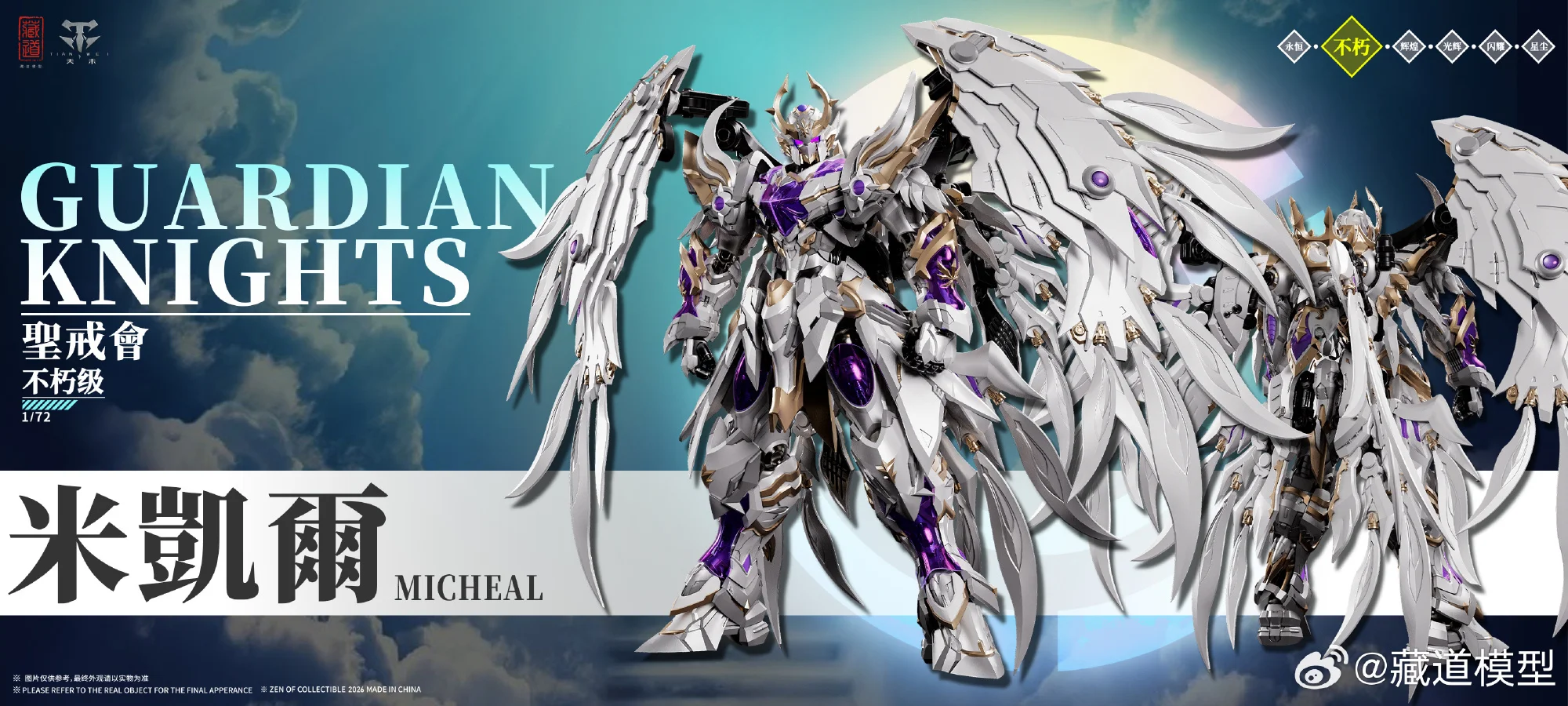 장도모형에서 신규 시리즈 가디언 나이츠(성계회)의 2번째 제품으로 천사 미카엘 이미지를 공개했습니다. 가디언 나이츠는 1/72 합금완성품이며, 현재 4개의 제품이 공개될 예정입니다. 첫번째가 천사 가브리엘, 두번째가 천사 미카엘이니 곧 천사 라파엘도 나오겠군요 ^^;