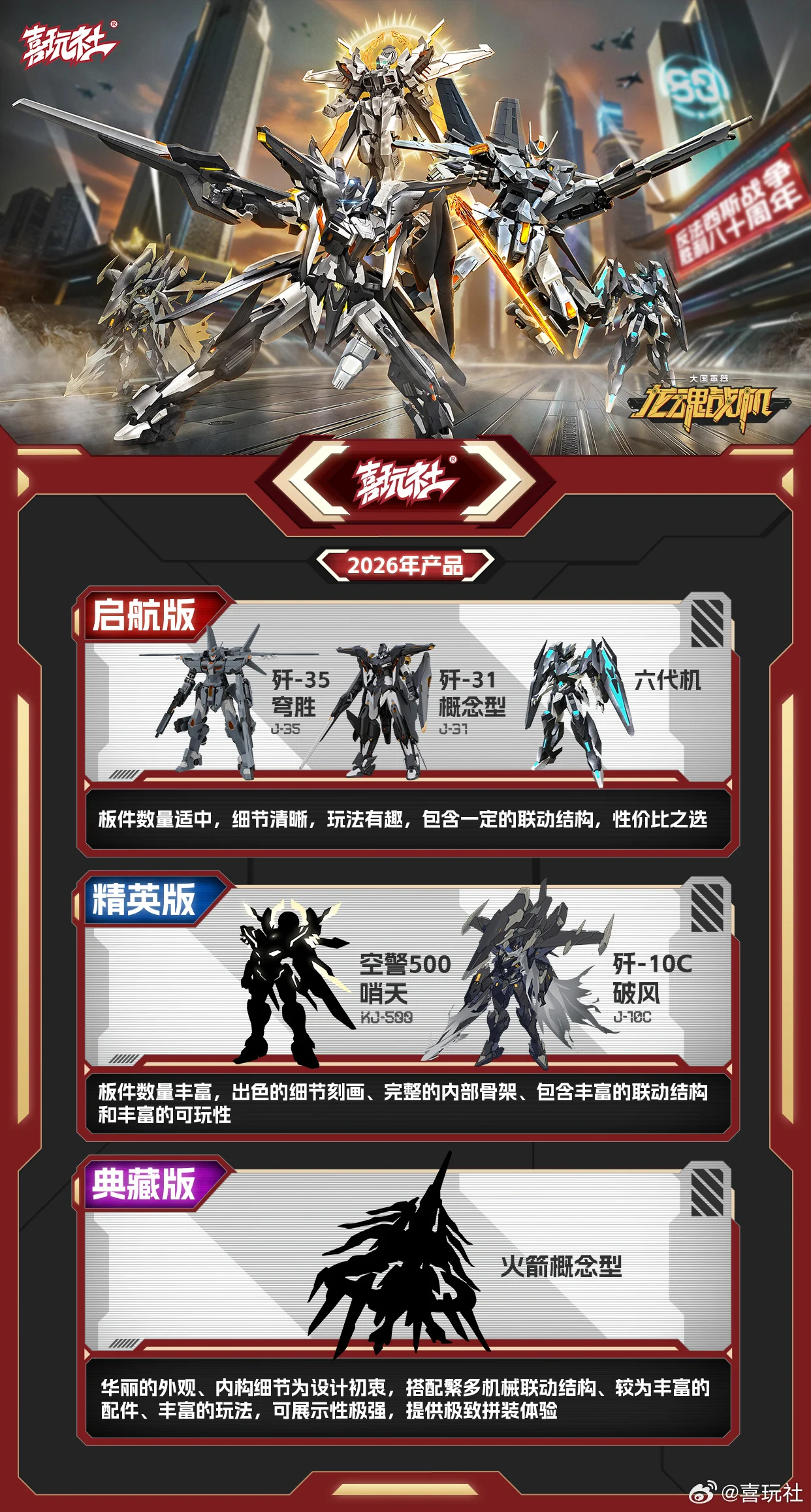 참고로 희완사는 계항급 외에 정영급과 전장급 라인업도 예고한 바 있습니다. 정영급은 풍성한 런너량, 우수한 디테일, 완전한 형태의 내부 프레임, 다양한 연동 기믹을 갖춘 제품군이고, 전장급은 정영급의 상위 호환으로 반다이 등급으로 보자면 MGEX 정도일 것으로 예상되네요 ^^;