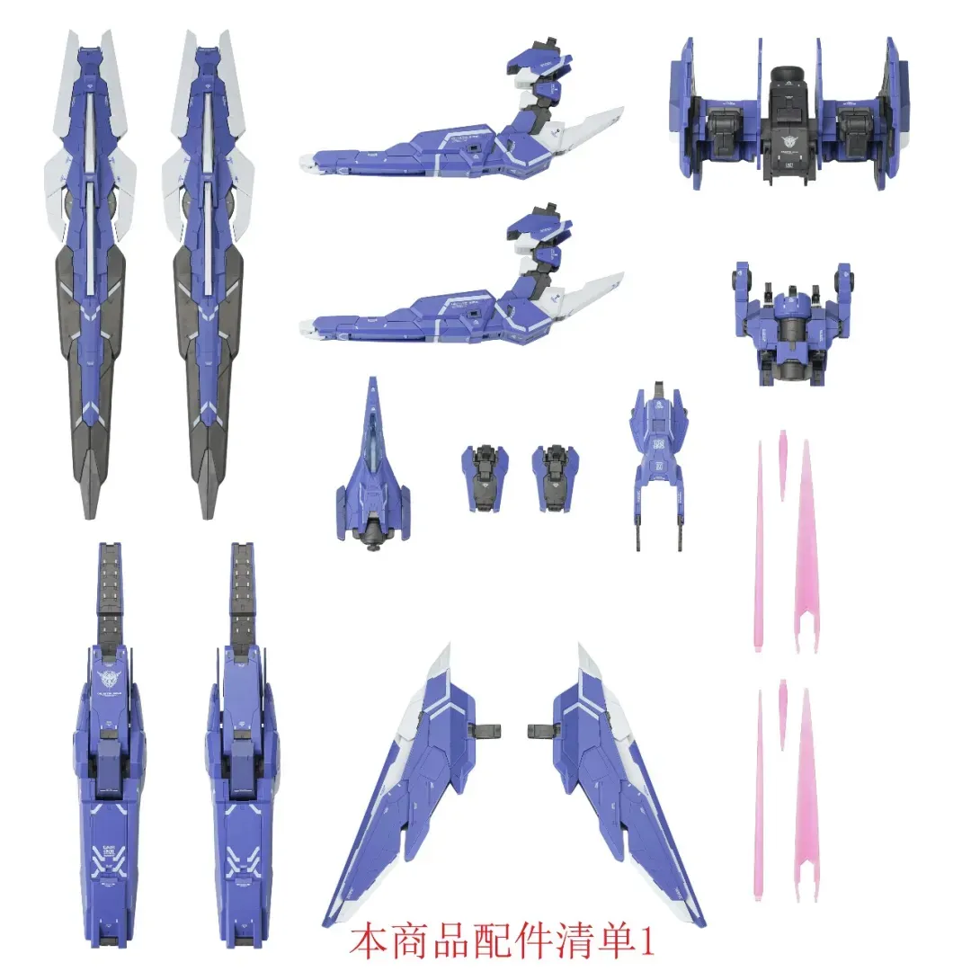 호환 제품은 메빌 쪽에서는 엑시아에서부터 듀나메스/아스트레아/아스트레아2와 호환되며 MG 쪽은 엑시아/듀나메스/나드레 등과 호환됩니다. 크기도 메빌과 동일한 길이 57cm, 폭 30cm, 높이 33cm이며 볼륨이 볼륨인만큼 고정성을 위해 전신에 다량의 POM 소재 파츠와 라챗이 적용됐다고 하네요.
