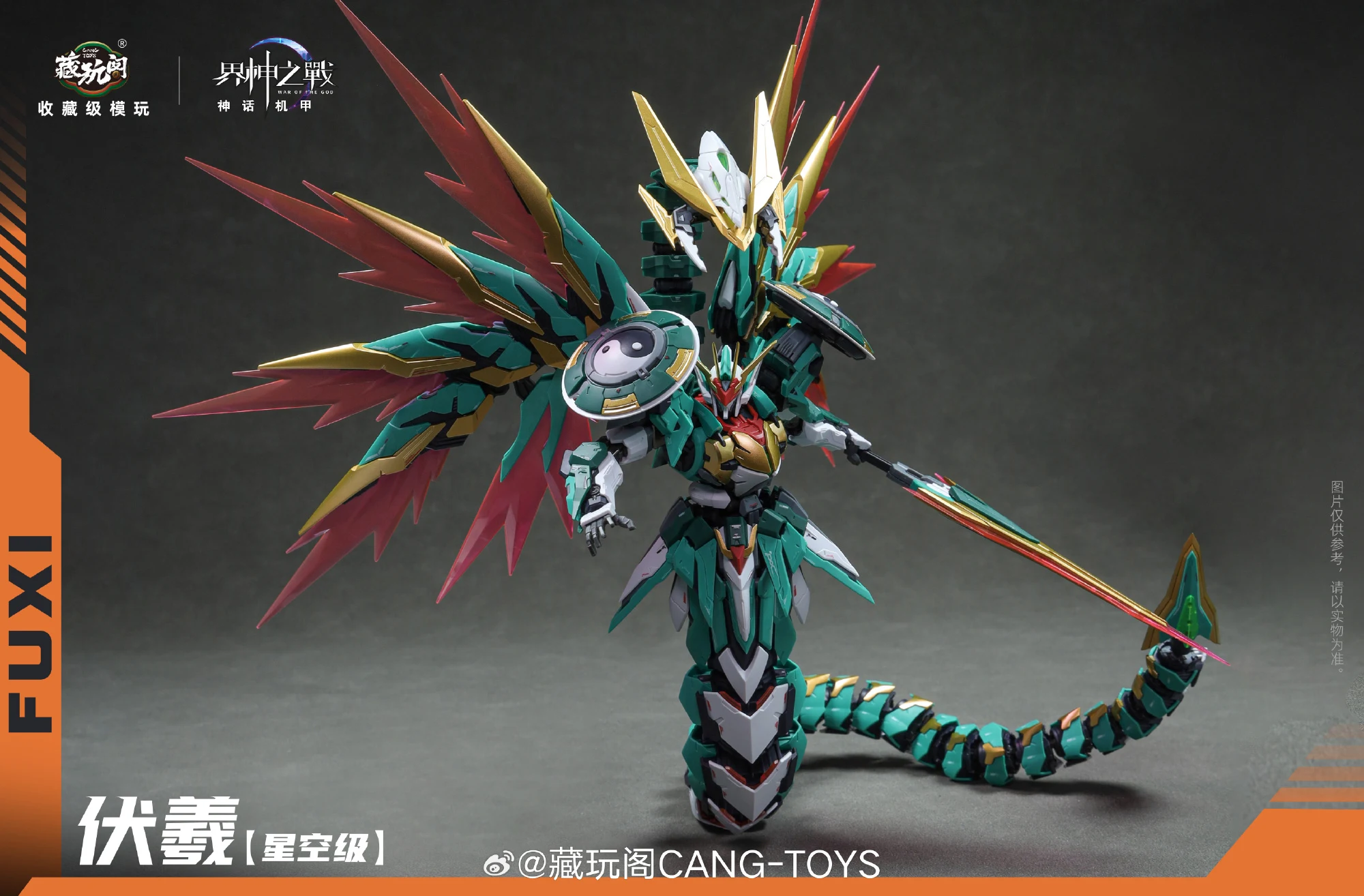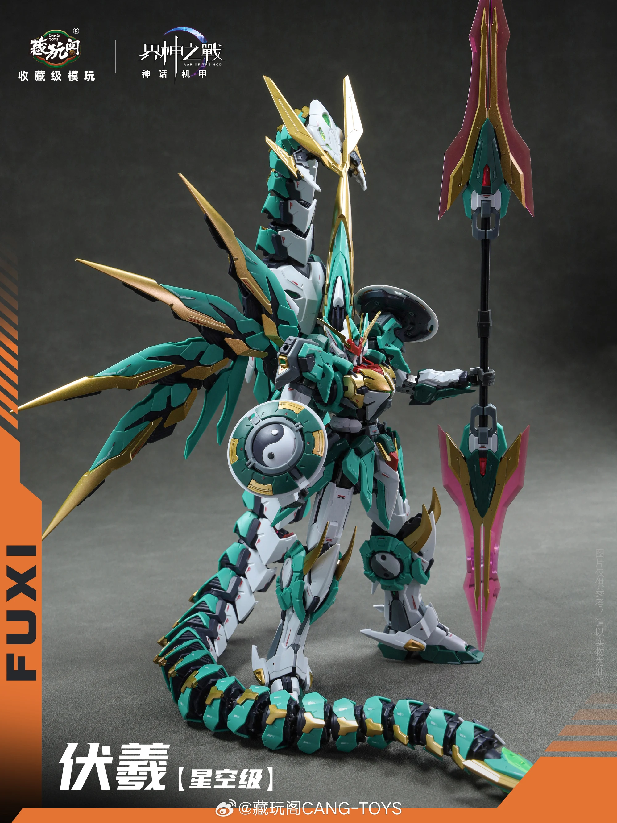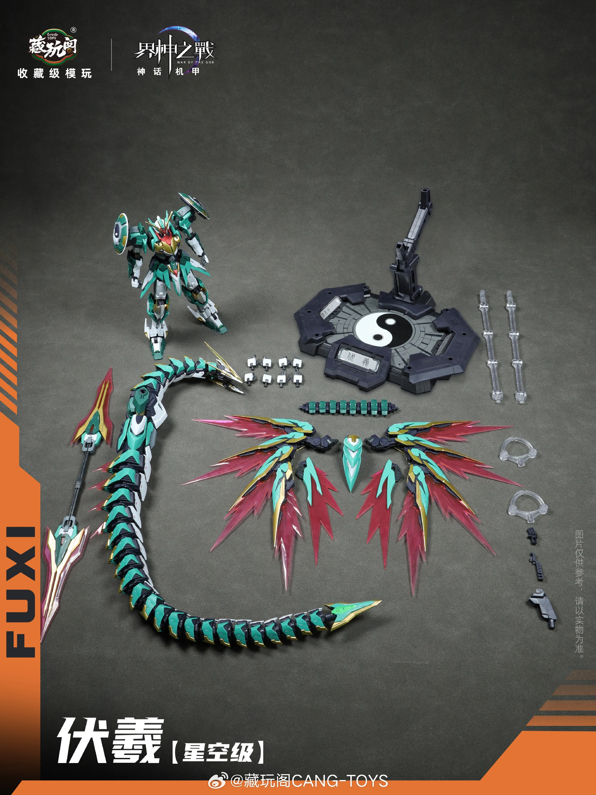 그 외, 공식 사진을 보니 그간 공개된 3D 모델링 및 CG 이미지와 달리…전체적인 조형이 엣지있게 잘 뽑힌터라…컬러와 스타일의 불호만 없다면 꽤 괜찮아 보입니다. 크기는 백팩 제외하고 약 20cm, 용(뱀) 유닛과 합체 및 분리가 가능하구요. 조립 완성된 합금프레임이 동봉됩니다. 가격은 188위안이구요.