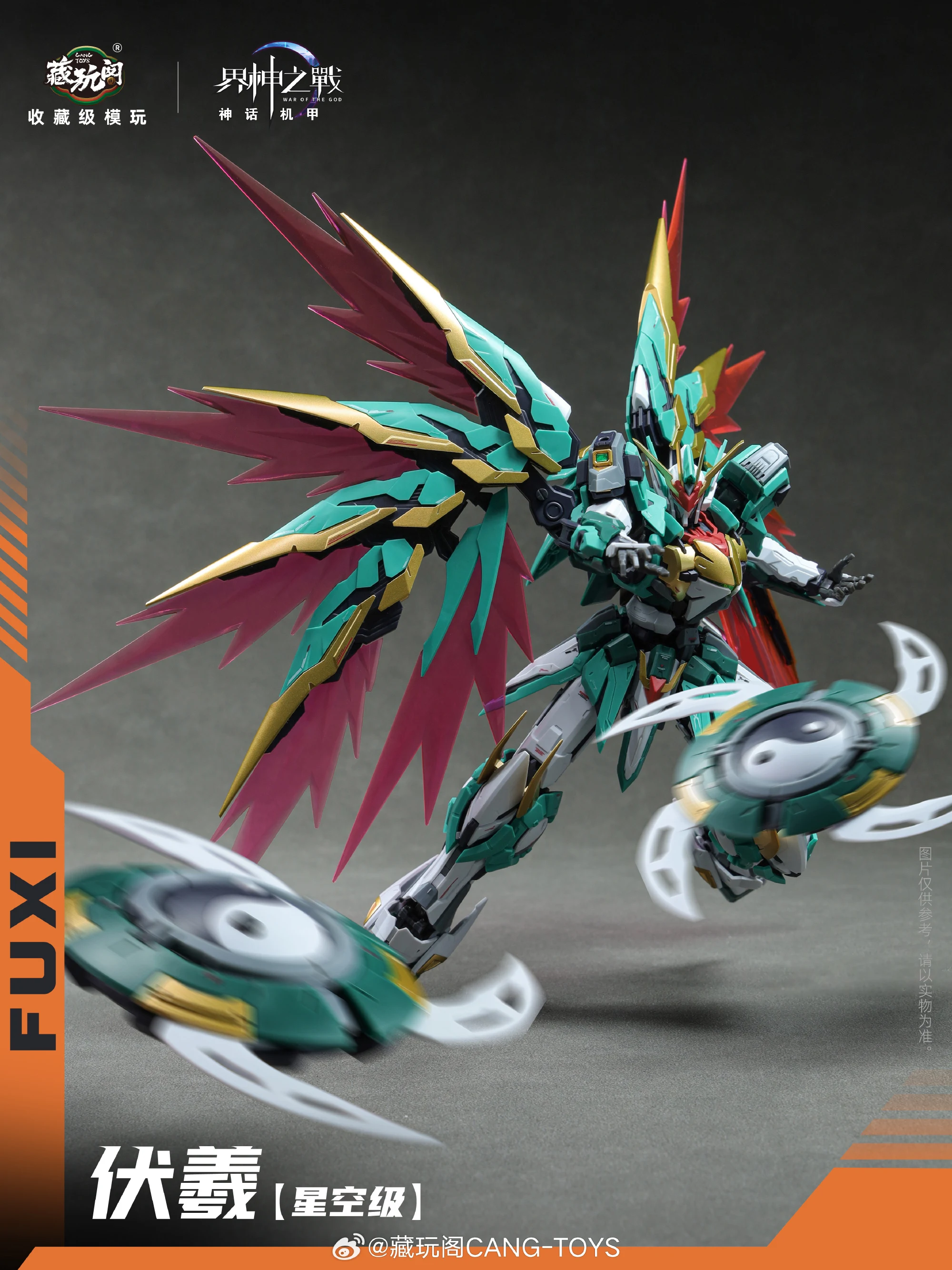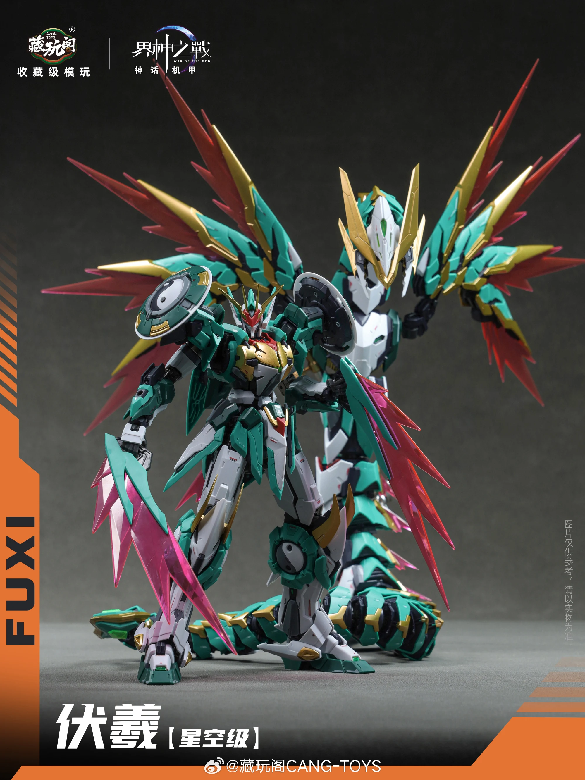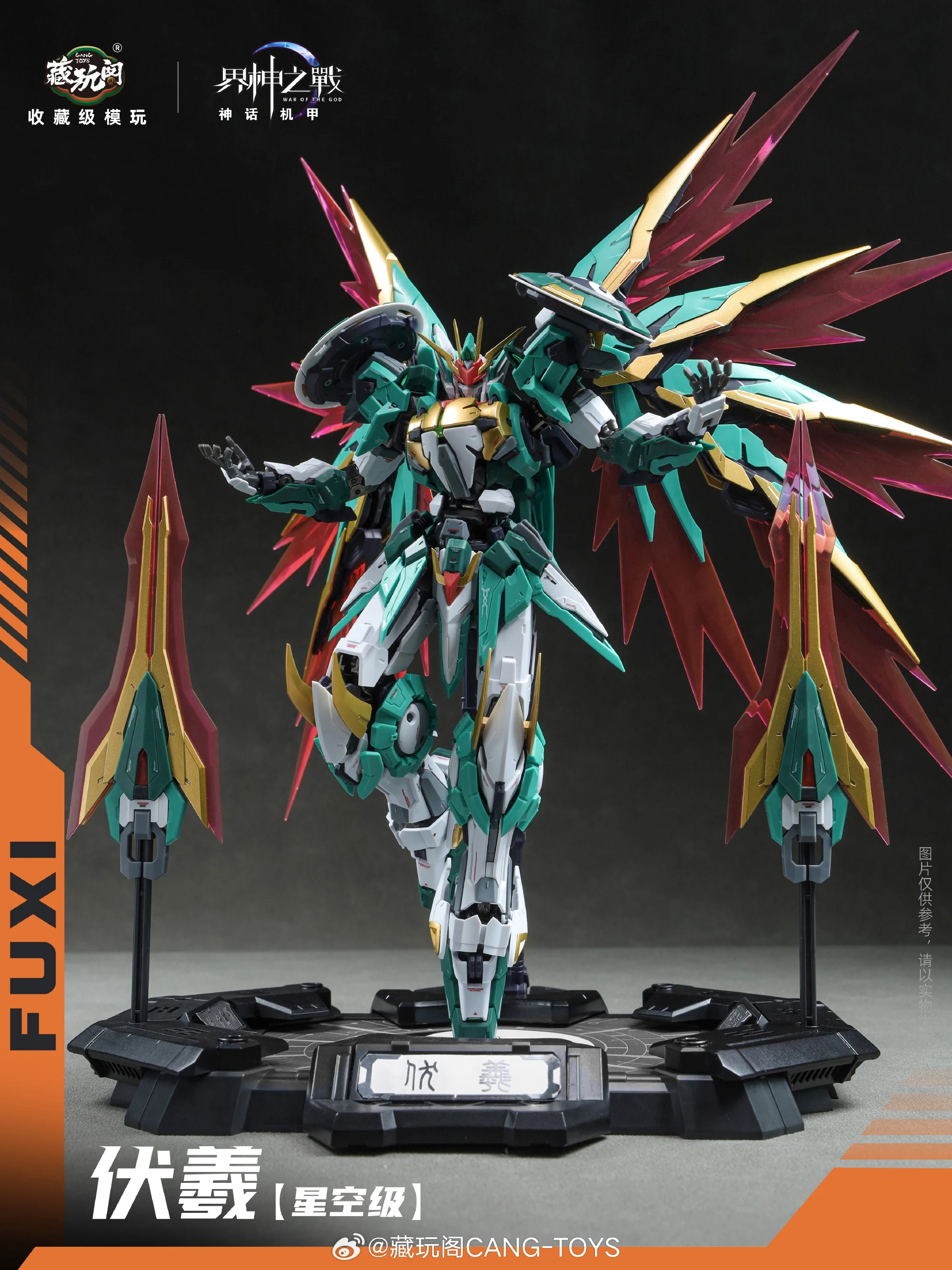 그 외, 공식 사진을 보니 그간 공개된 3D 모델링 및 CG 이미지와 달리…전체적인 조형이 엣지있게 잘 뽑힌터라…컬러와 스타일의 불호만 없다면 꽤 괜찮아 보입니다. 크기는 백팩 제외하고 약 20cm, 용(뱀) 유닛과 합체 및 분리가 가능하구요. 조립 완성된 합금프레임이 동봉됩니다. 가격은 188위안이구요.