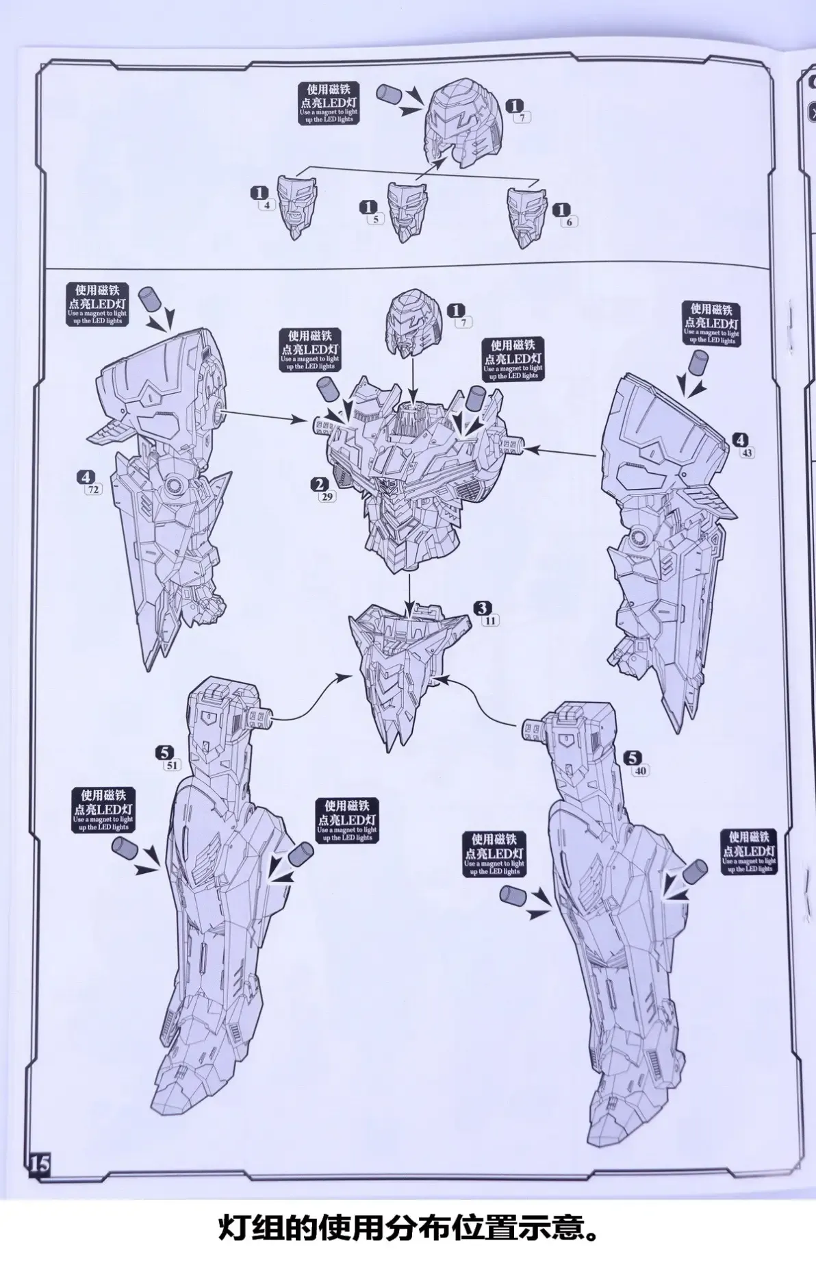크기는 약 22cm, 런너는 크고 작은 걸 포함해서 45장이며 가슴/어깨/다리에 자석 ON/OFF 가능한 LED 유닛이 들어가는군요. 런너 9장이 사전 도색 처리되어서 순조만으로 꽤 괜찮은 색 분할을 보여주며, 일부 파츠는 부분 도색도 되어 있는 모습입니다. 사출 품질은 별 문제 없이 꽤 무난하네요. 큼지막한 베이스와 스탠드도 동봉되고, 가격은 248위안입니다.