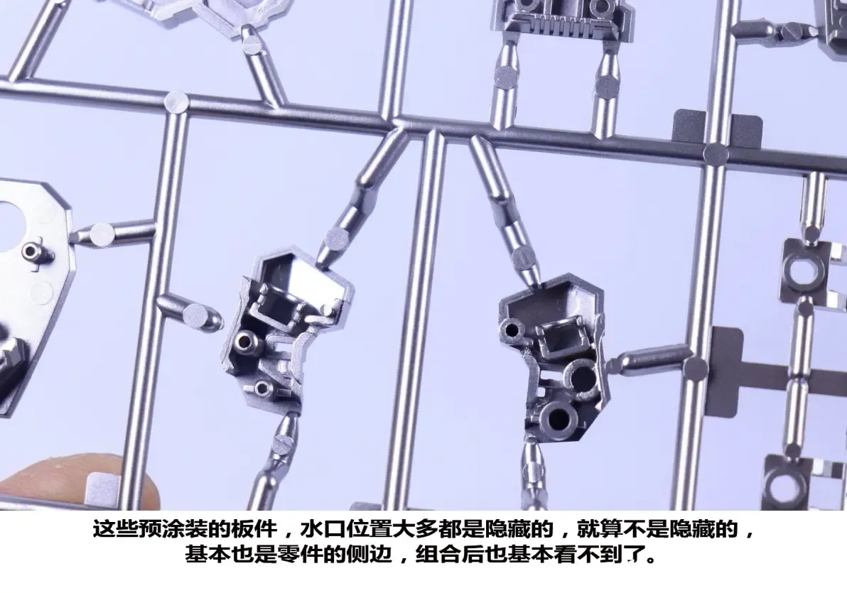 | 메탈릭 성형색이 적용된 파츠들은 어느 정도 웰드라인이 있긴 합니다 |
