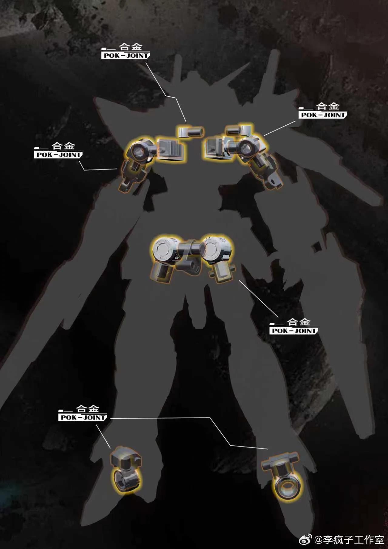 제품에는 합금 관절 파츠가 동봉된다고 하는데요. 해당 관절에는 그간 추장대륙에서 적극적으로 활용해온 POK가 함께 조합되어 합금+POK 조합의 튼실한 관절 강도를 보여줄 것으로 예상됩니다.