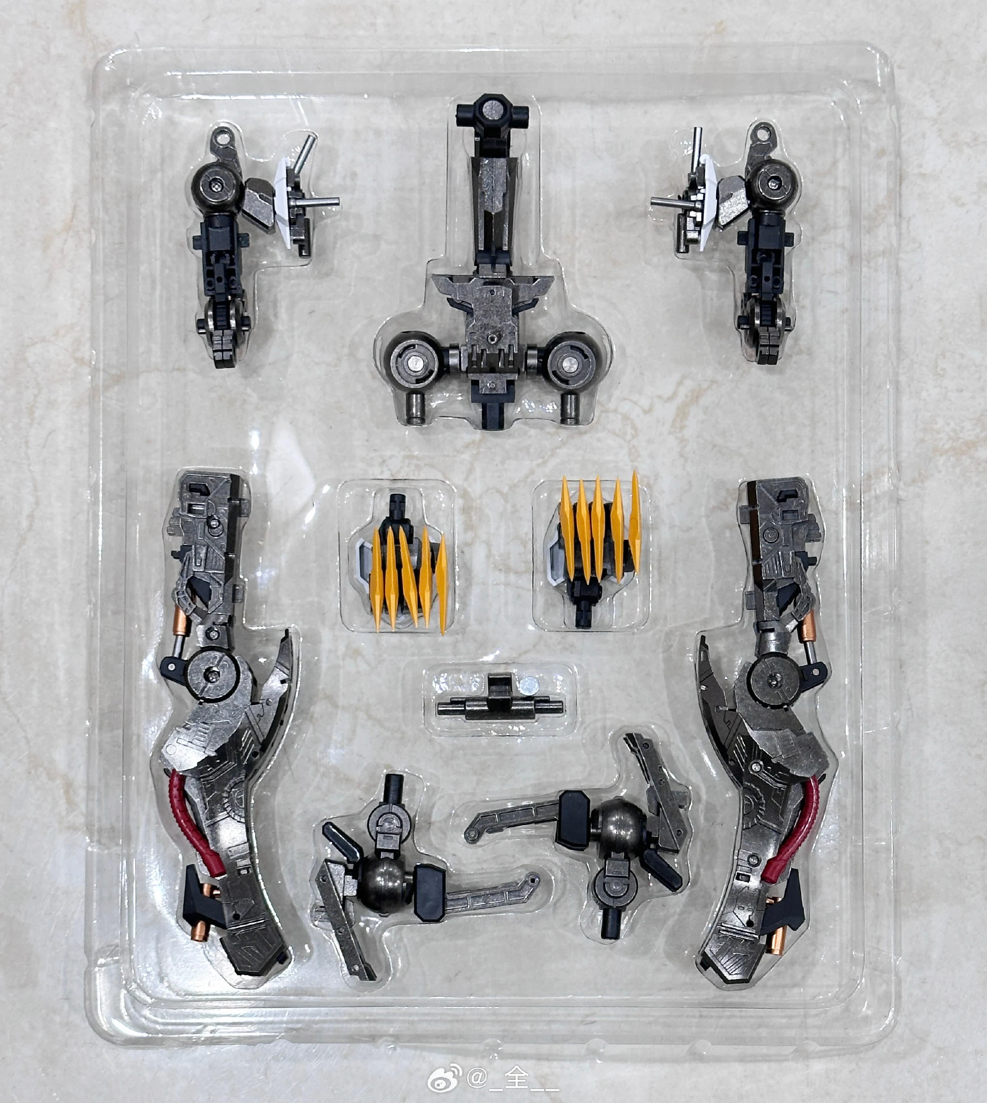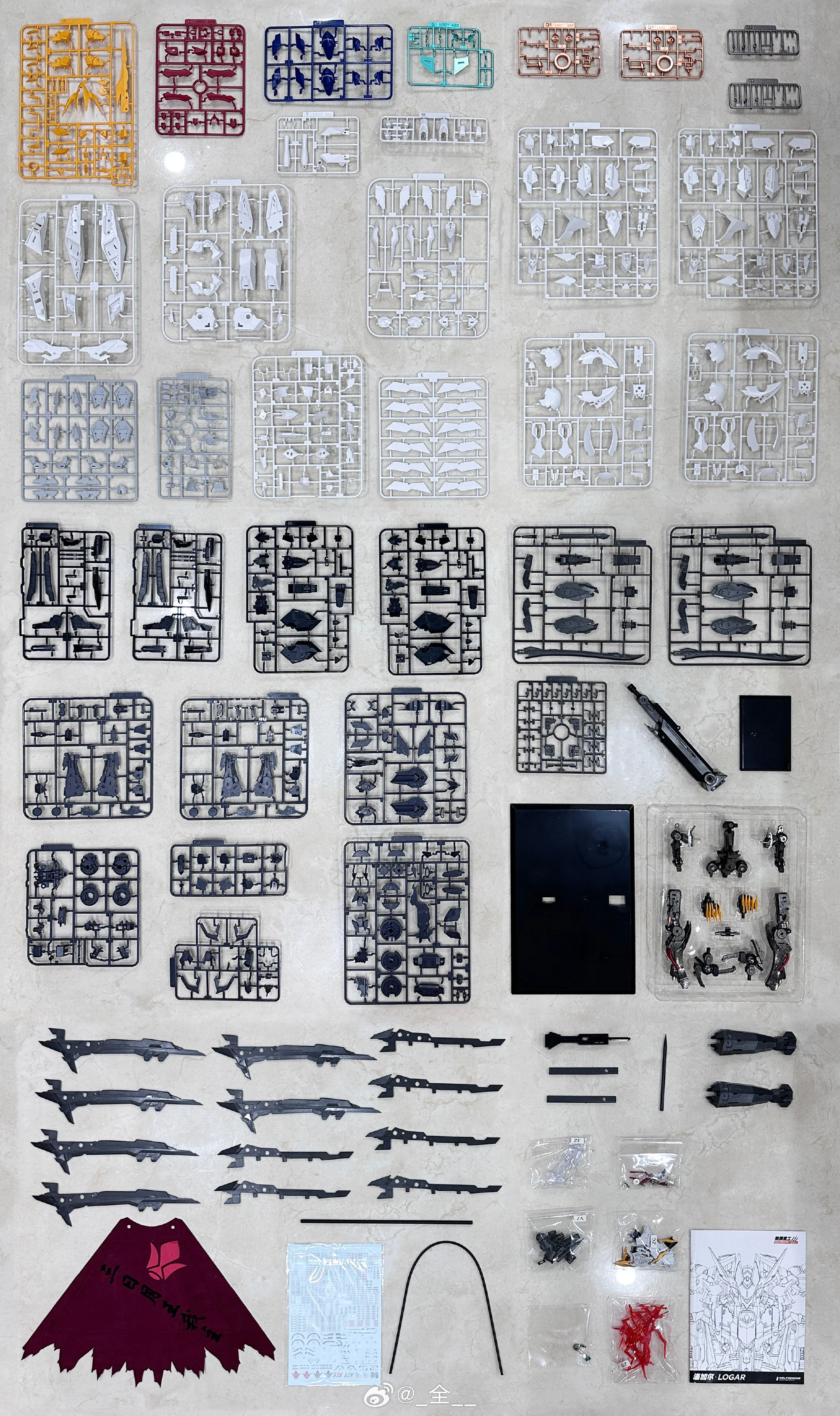 우선 공개된 구성품 사진을 보면...선행 샘플이기에 아직 정식 패키지 박스는 아닌 모습입니다. 설명서, 사전 조립된 합금프레임 파츠가 동봉되고 큰 박스에는 런너들이, 작은 박스에는 이펙트 파츠와 일부 옵션/무장 파츠가 개별 파츠로 동봉되어 있네요. 최종 양산품에서도 이렇게 나올지 한번 봐야겠습니다.