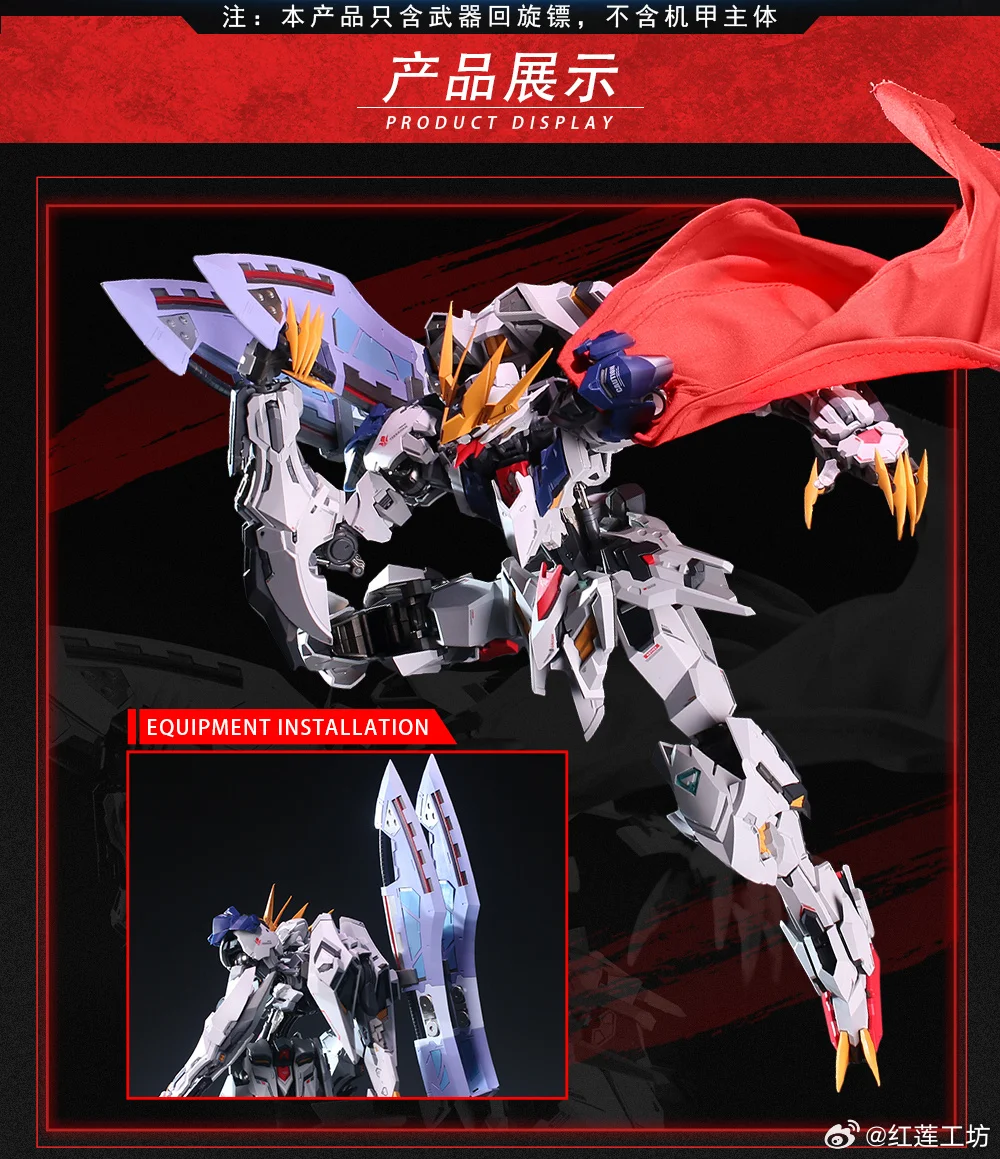 해당 무장은 반다이의 MG 발바토스(제4형태/루프스), 울프모형/식월문화/낭해중공의 발바토스 루프스 렉스, 그리고 무한신성의 펜리르에 모두 적용할 수 있구요. 부메랑 메이스의 크기는 약 36cm, 가격은 59위안입니다. 출시 예정시기는 2026년 2~3분기군요.