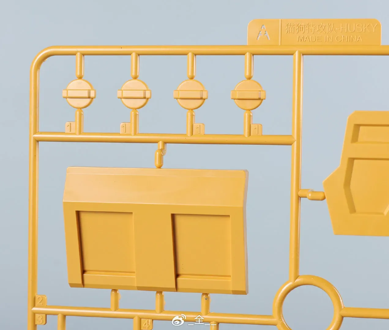 | 웰시코기 쪽의 레드 컬러 런너는 메탈릭 사전 도색 처리되어 있습니다. 일부 파츠에는 텍스트도 프린팅되어 있네요 |