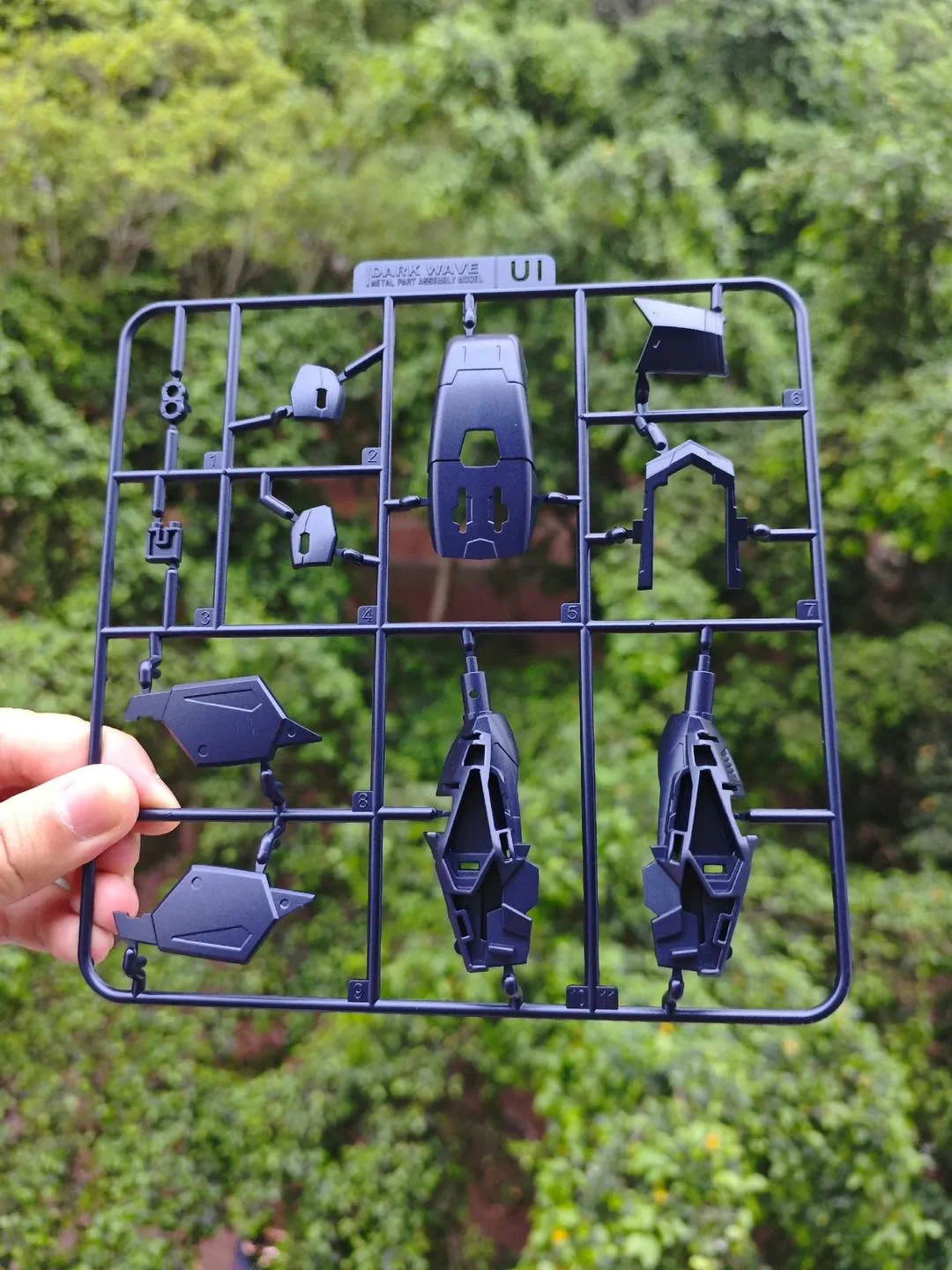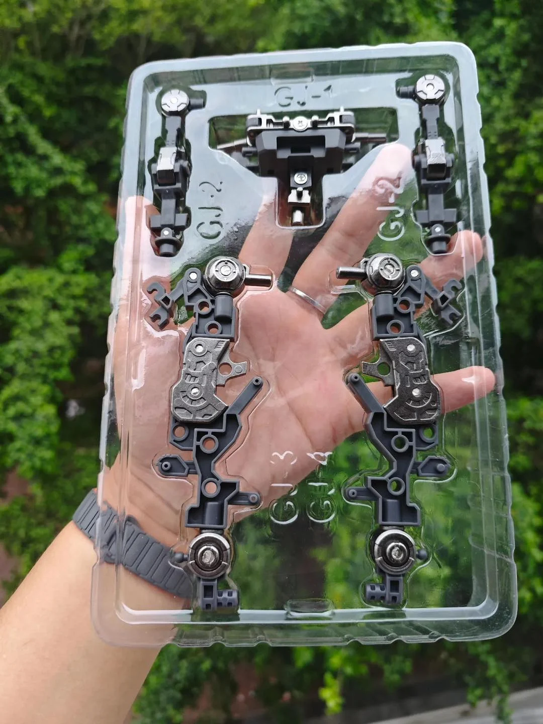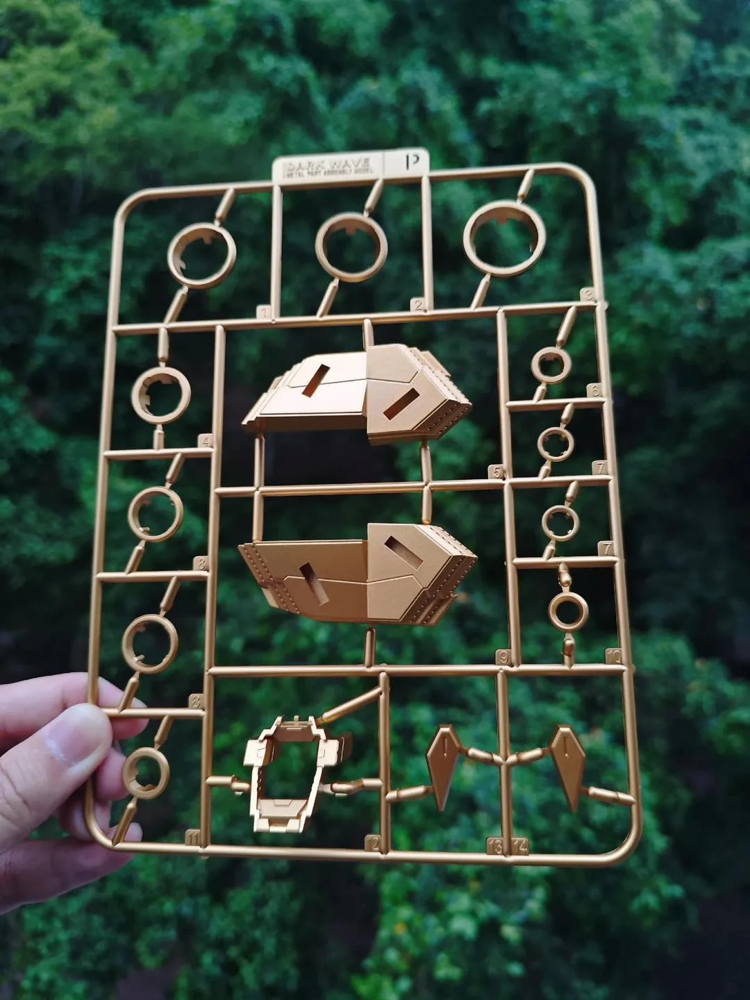 런너들을 살펴보면 전체적으로 파츠 크기가 큼지막한 편이며 파츠 분할이 그리 세세하게 된 건 아니어서 파츠 수가 그리 많진 않은 듯 하구요. 사전 도색 처리된 런너는 퀄리티가 꽤 괜찮아 보입니다. 합금프레임은 사전 조립된 상태로 동봉되어 있는데 현지 리뷰어 평가를 보니 묵직하다기 보단 좀 가벼운 느낌이라는군요. 관절 강도는 좀 더 지켜봐야 할 것 같습니다.