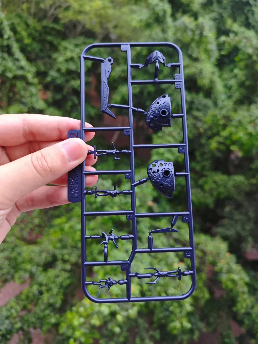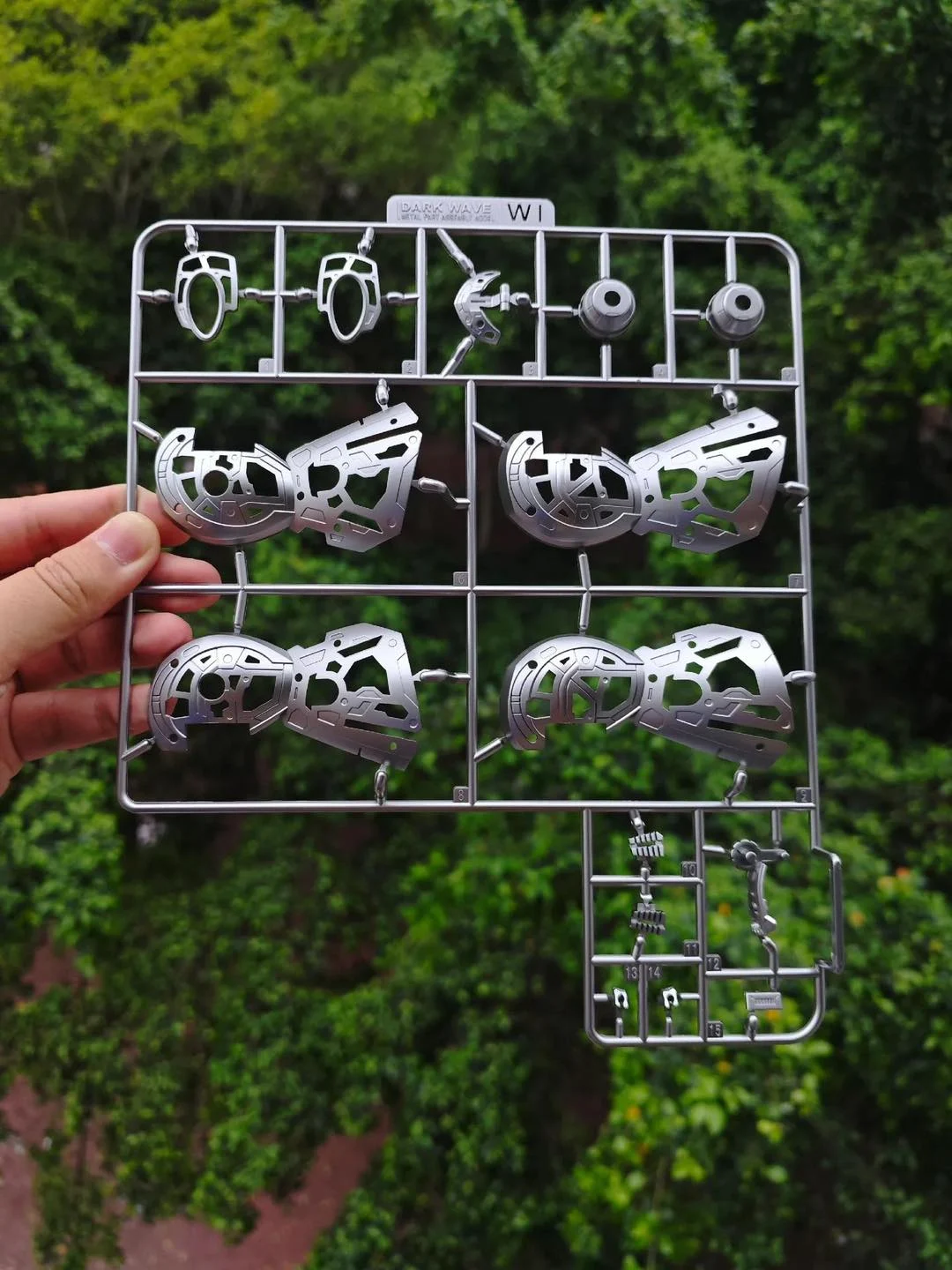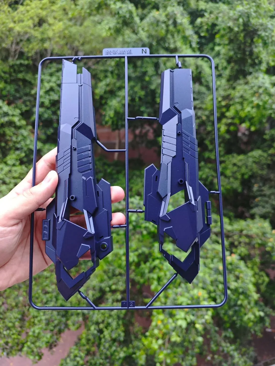 런너들을 살펴보면 전체적으로 파츠 크기가 큼지막한 편이며 파츠 분할이 그리 세세하게 된 건 아니어서 파츠 수가 그리 많진 않은 듯 하구요. 사전 도색 처리된 런너는 퀄리티가 꽤 괜찮아 보입니다. 합금프레임은 사전 조립된 상태로 동봉되어 있는데 현지 리뷰어 평가를 보니 묵직하다기 보단 좀 가벼운 느낌이라는군요. 관절 강도는 좀 더 지켜봐야 할 것 같습니다.
