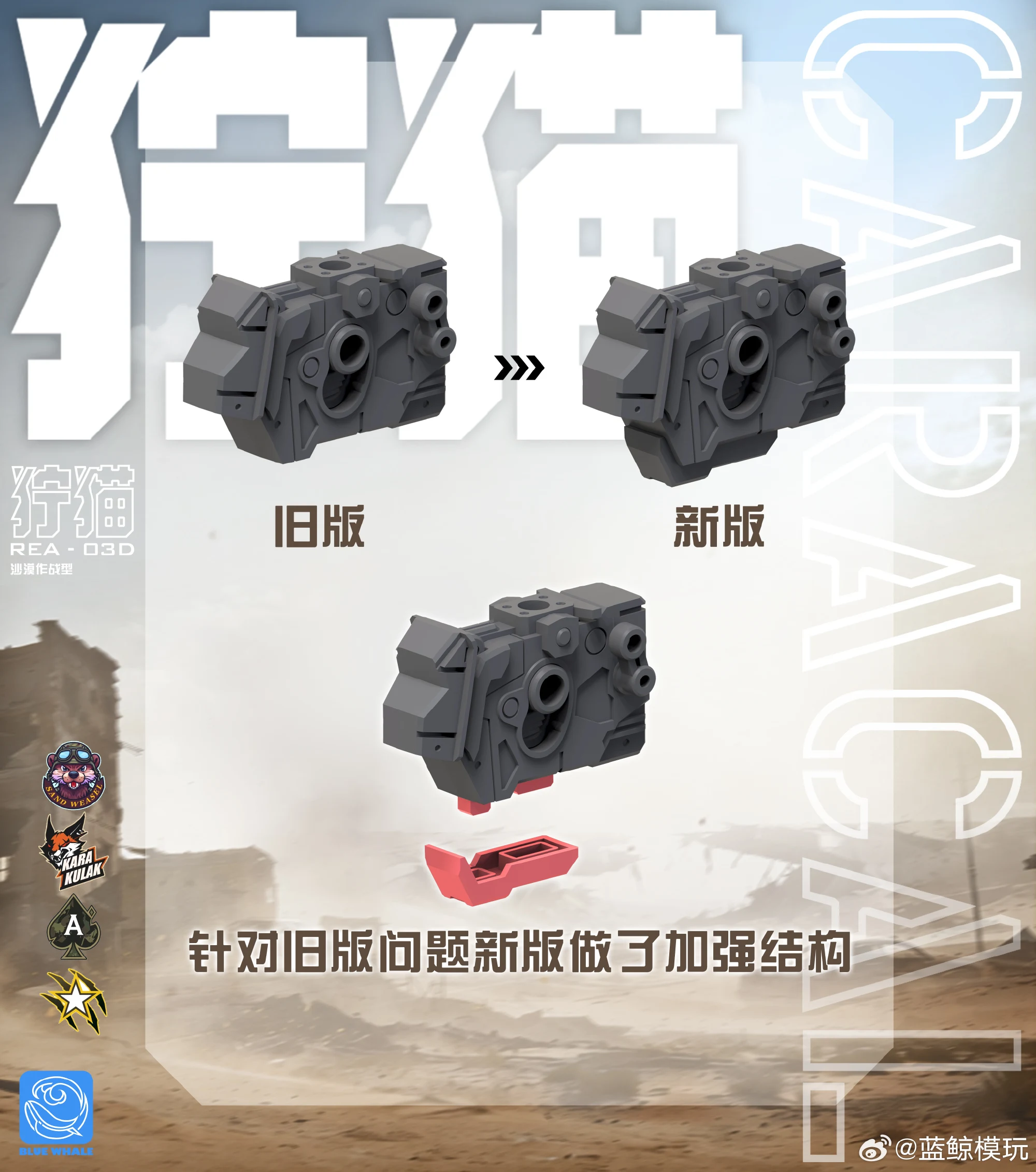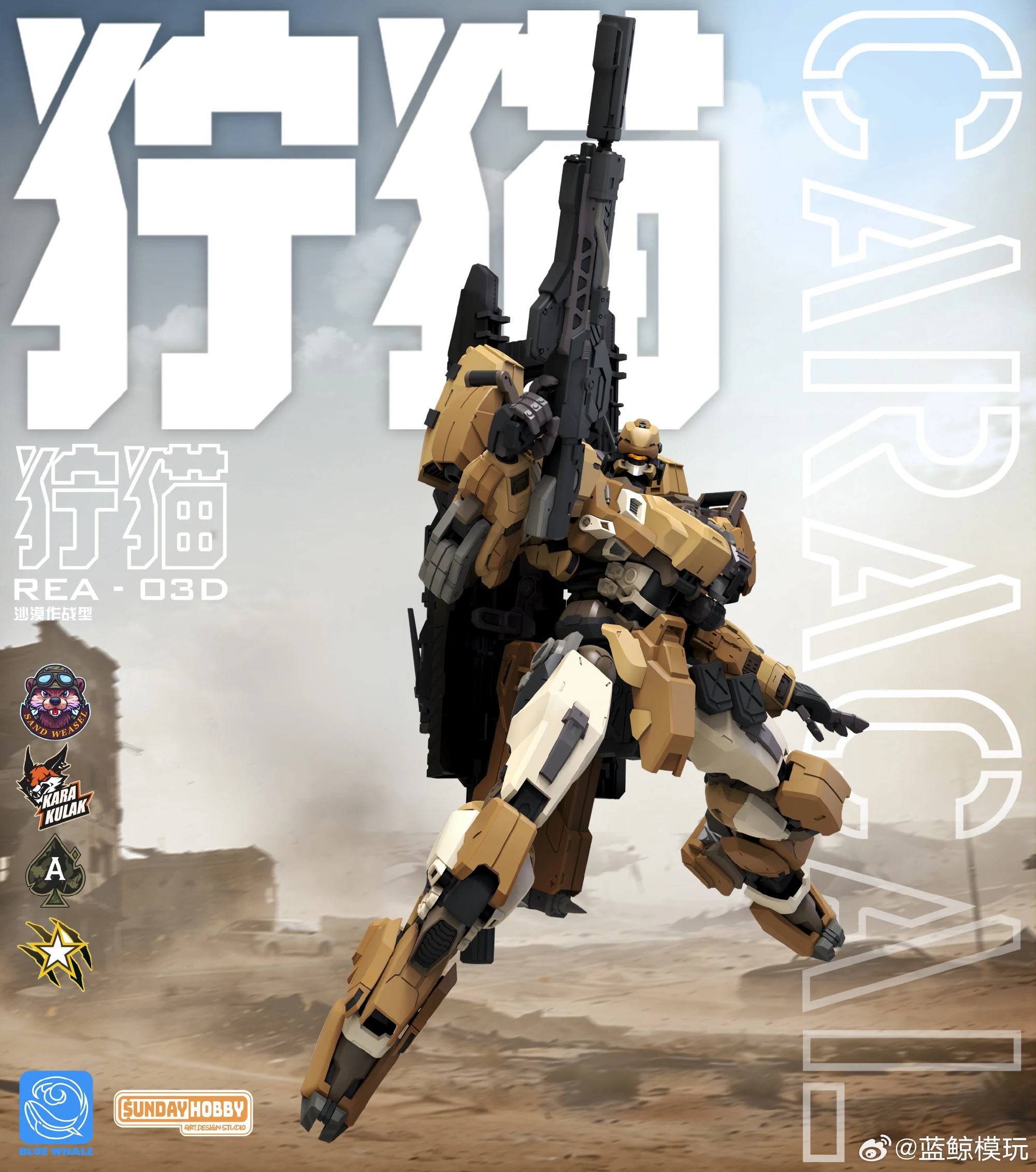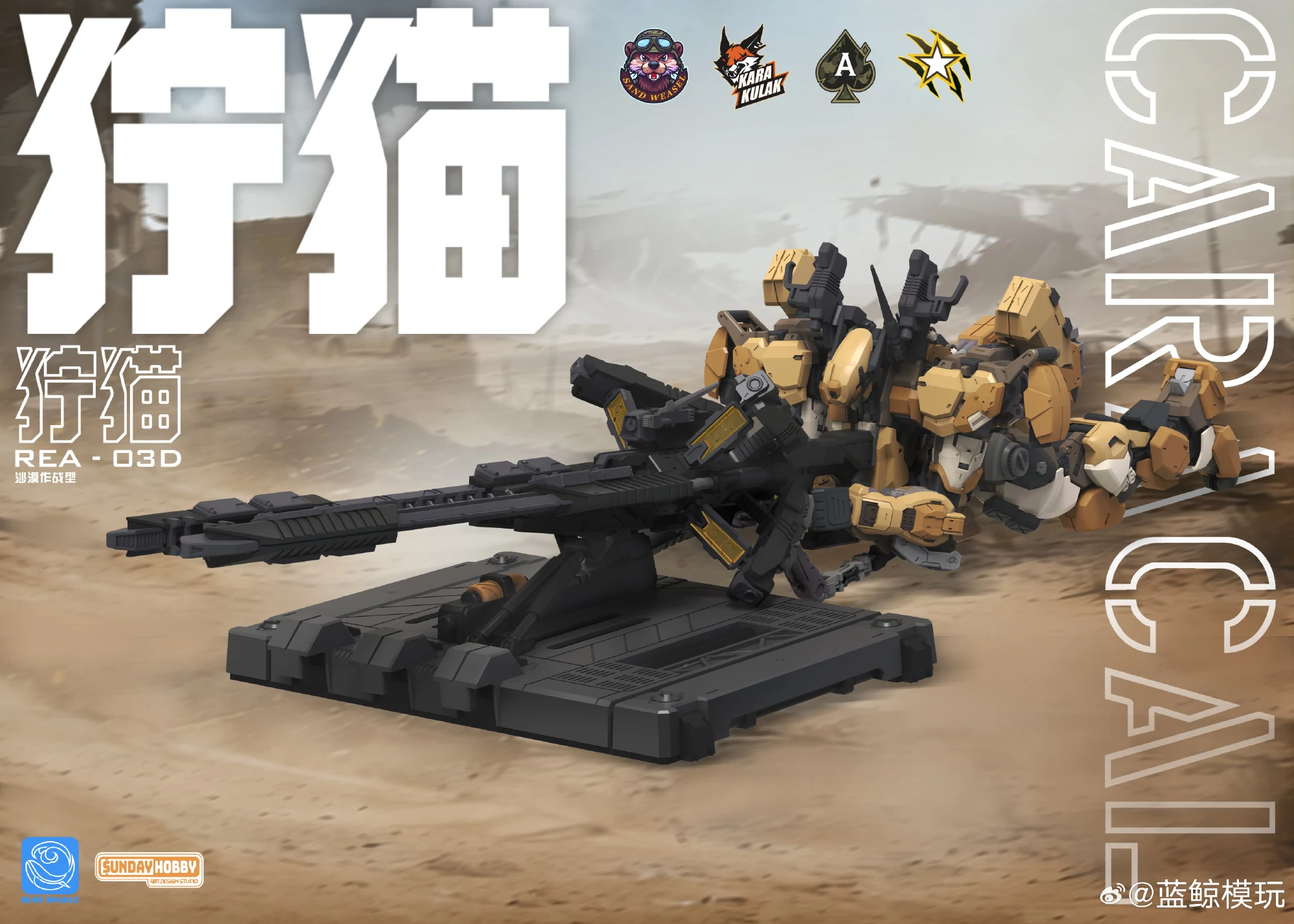 명장전에서 앞서 출시한 링스의 바리에이션 킷으로 데저트 컬러를 적용한 카라칼 사막작전형(프라모델)을 공개했습니다. 기체 넘버로 보자면 링스가 REA-03, 카라칼이 REA-03D이네요. 링스나 카라칼이나 같은 고양이과의 맹수라는 걸 생각하면 이런 식의 네이밍도 꽤 괜찮은 것 같습니다 ^^