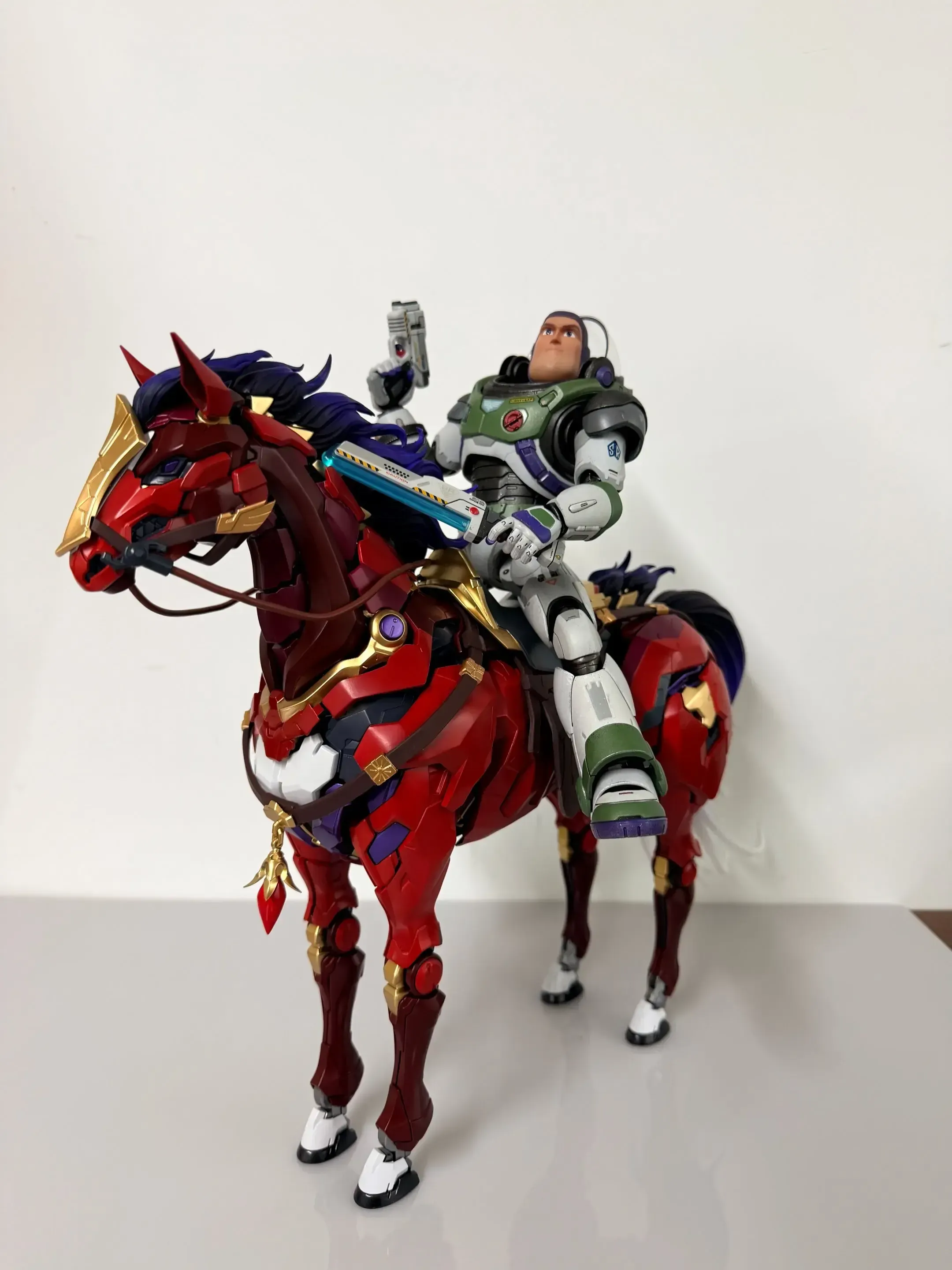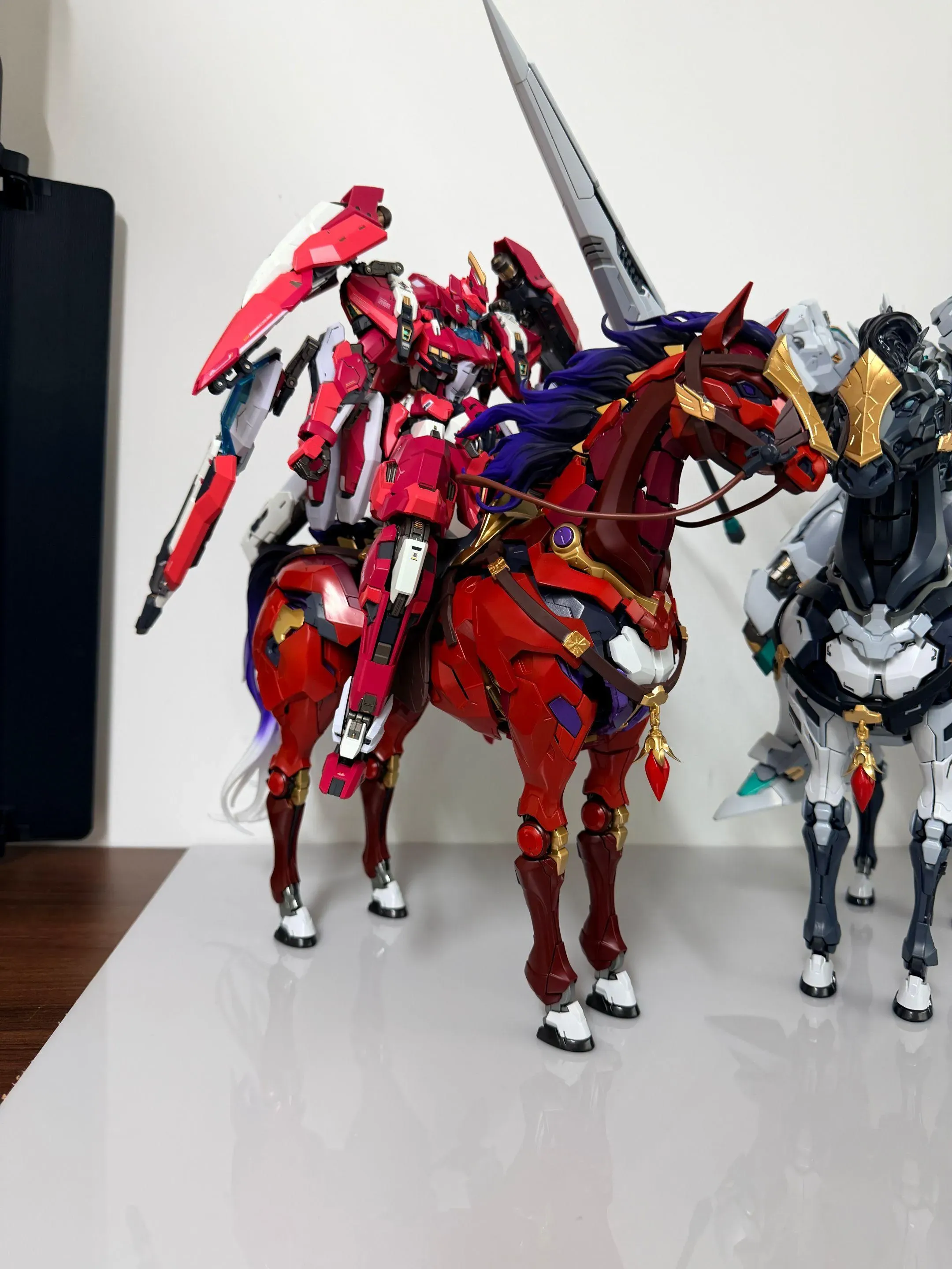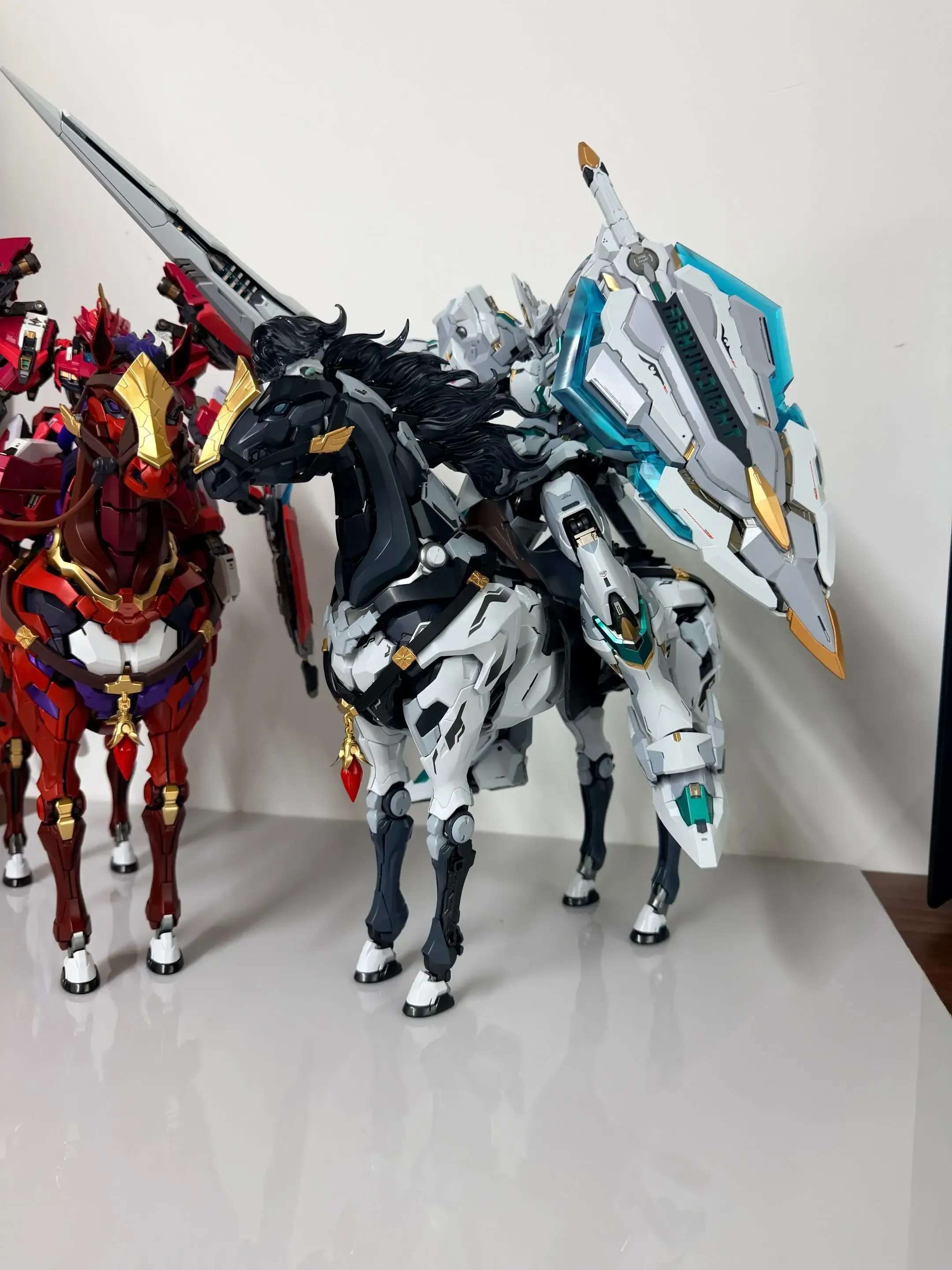 그 외에 말의 크기와 다양한 포징을 확인할 수 있는 사진도 있습니다. 우선 크기부터 보면, 노블 클래스의 위국공과 호수의 기사 랜슬롯을 올려뒀는데...노블 클래스가 대략 25cm 이상인지라 좀 큰 느낌이네요. 얼추 1/100 제품이면 잘 어울릴 것 같습니다 ㅎㅎ 이어서 포징은 다른 건 모르겠고 뒷발 2개로 설 수가 있습니다 ㄷㄷ; 말 발굽이 크지 않은데 무게 중심이 잘 잡혀있나 보네요;