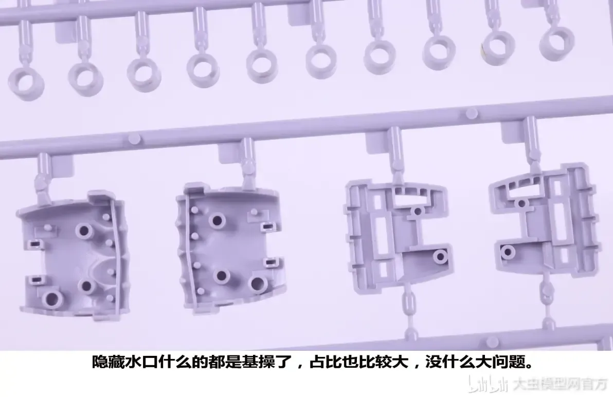 - 그레이 컬러의 내부 프레임 파츠는 파츠 크기가 크다보니 물결 자국(웰드라인)이 보이긴 합니다만, 봐줄만한 정도? 그렇게 심하진 않다고 합니다. 그리고 내부 프레임이기 때문에 외장을 입히고 나면 가려져서 거의 보이지 않습니다.